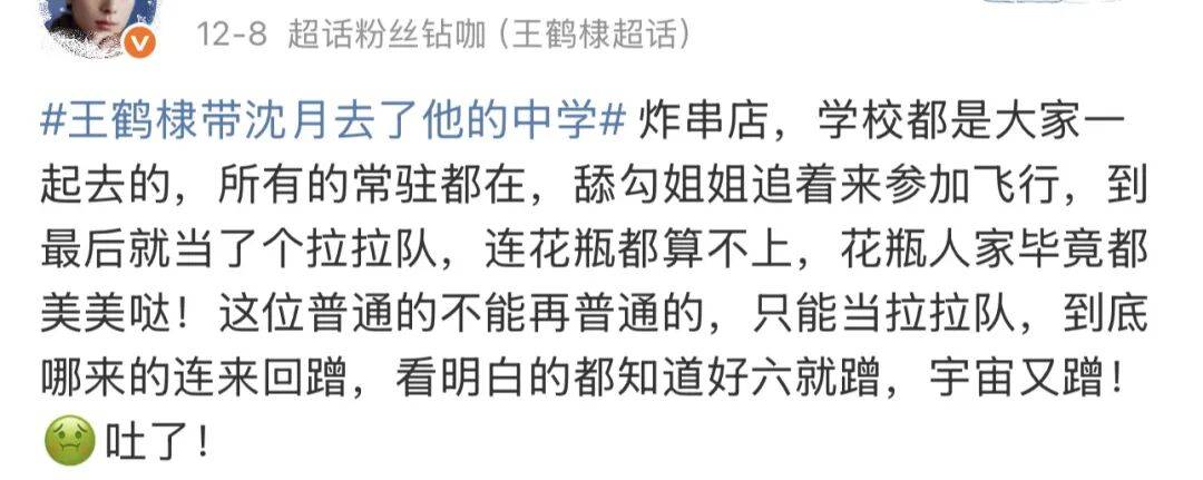 还有小部分沈月粉丝心疼正主,一边怒怼王鹤棣粉丝“翻脸比翻书还快”,当初王鹤棣刚出道,沈月帮着互动带热度,粉丝帮做数据、cp粉包场应援的时候,你们怎么不说蹭?怎么不说烦?现在红了就翻脸,开始嫌弃沈月碍眼了。