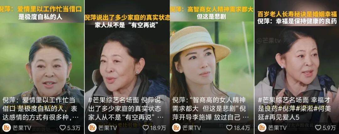 芒果TV的短视频官方账号内,倪萍在节目中精准点评的两条视频点赞量高达18万。