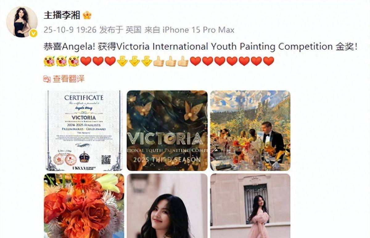 不仅如此,就在今年10月9日,李湘还晒出了王诗龄获得“国际青少年绘画大奖赛金奖”的证书,再次证明了她在绘画上的实力。