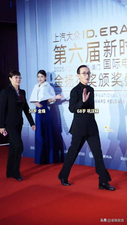 两人对视时,金珠紧绷的嘴角会悄悄放松,这份默契藏都藏不住。有网友调侃:“巩叔这是把红毯走出了护妻的架势,太好磕了。”