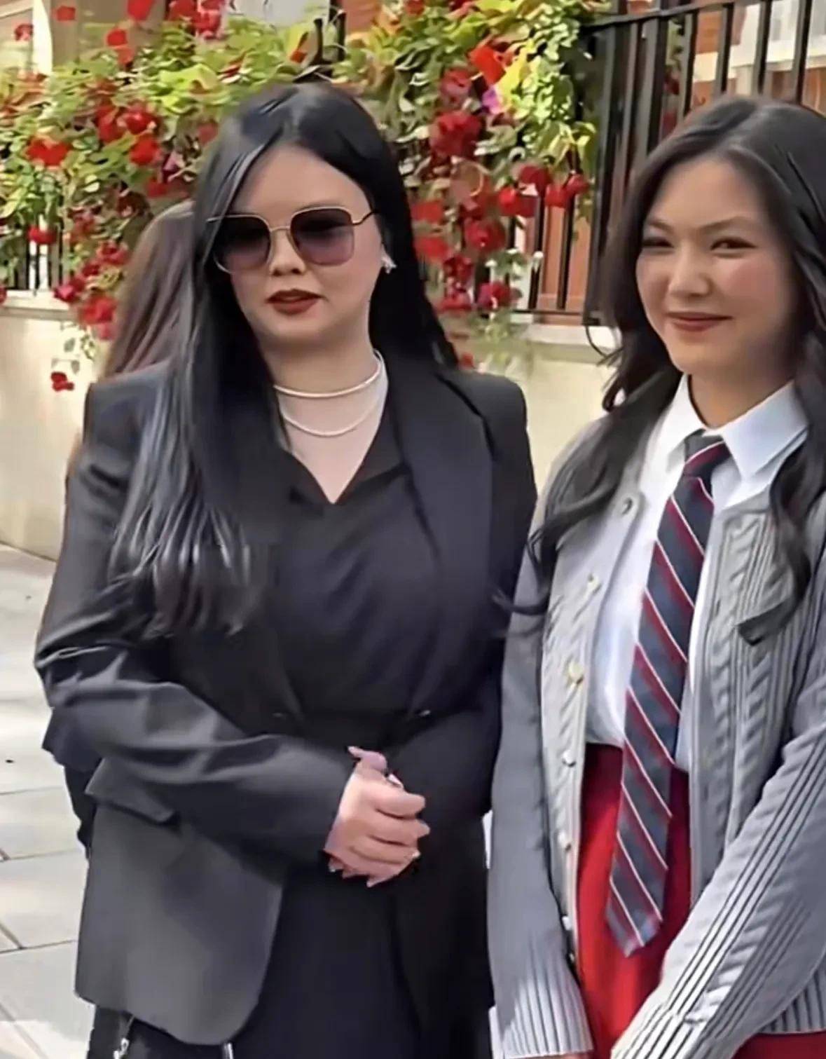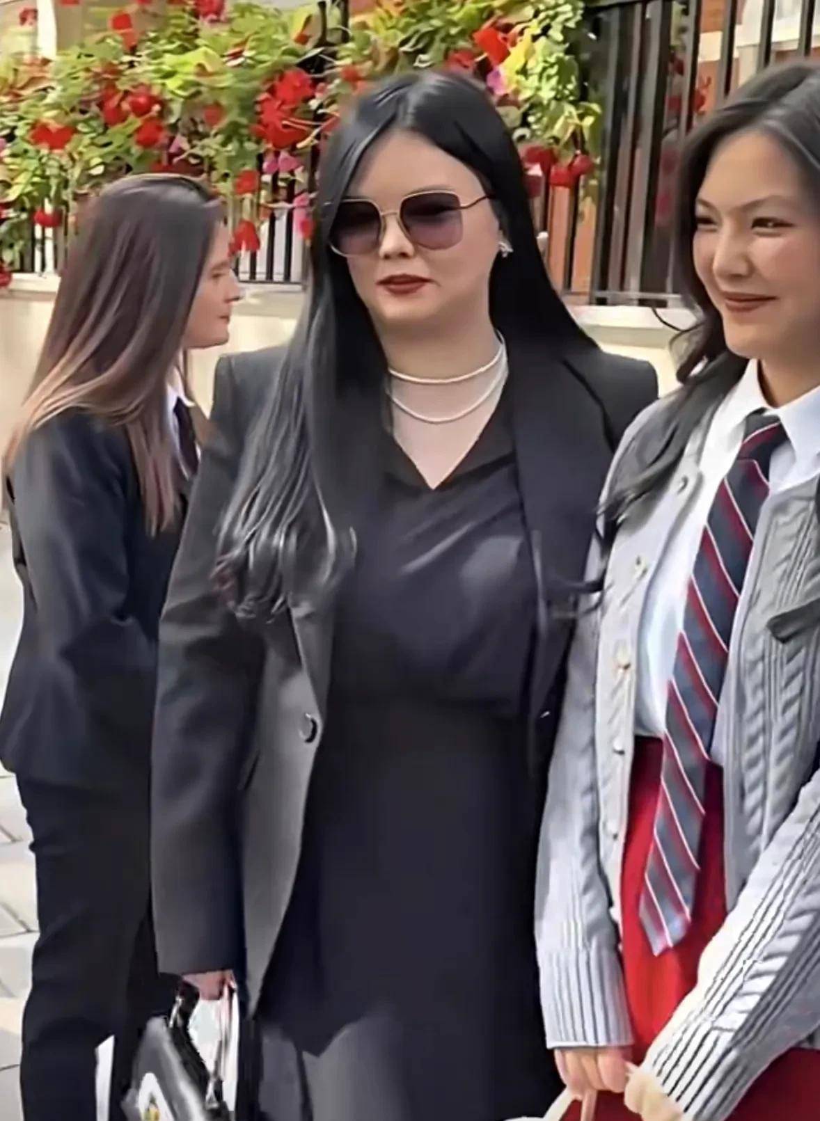 当日,李湘一身全黑装扮亮相:黑色西装外套搭配连衣裙,手拎黑包,墨镜掩面,却掩不住通身的雍容气度。她长发垂肩,妆容精致,举止间既有女强人的利落,又不失企业家的沉稳,在女儿身旁更显从容风采,这般气场确非常人所能及。