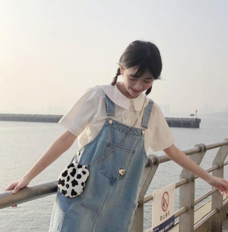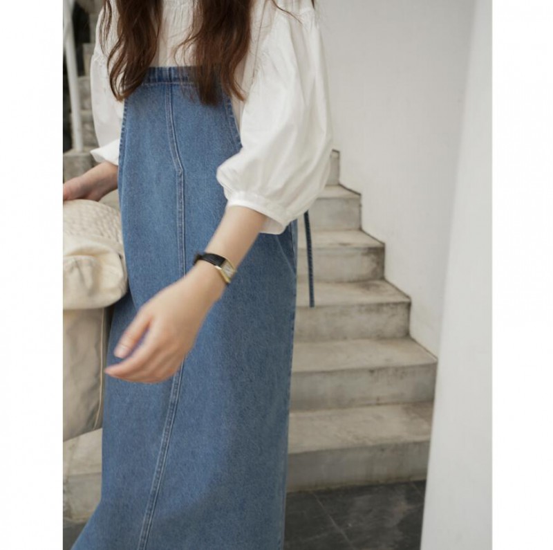 白色衬衫应该是我们日常穿搭中利用率相当高的一款服饰了,基础、百搭,搭配一条长牛仔背带裙,清新范儿十足。