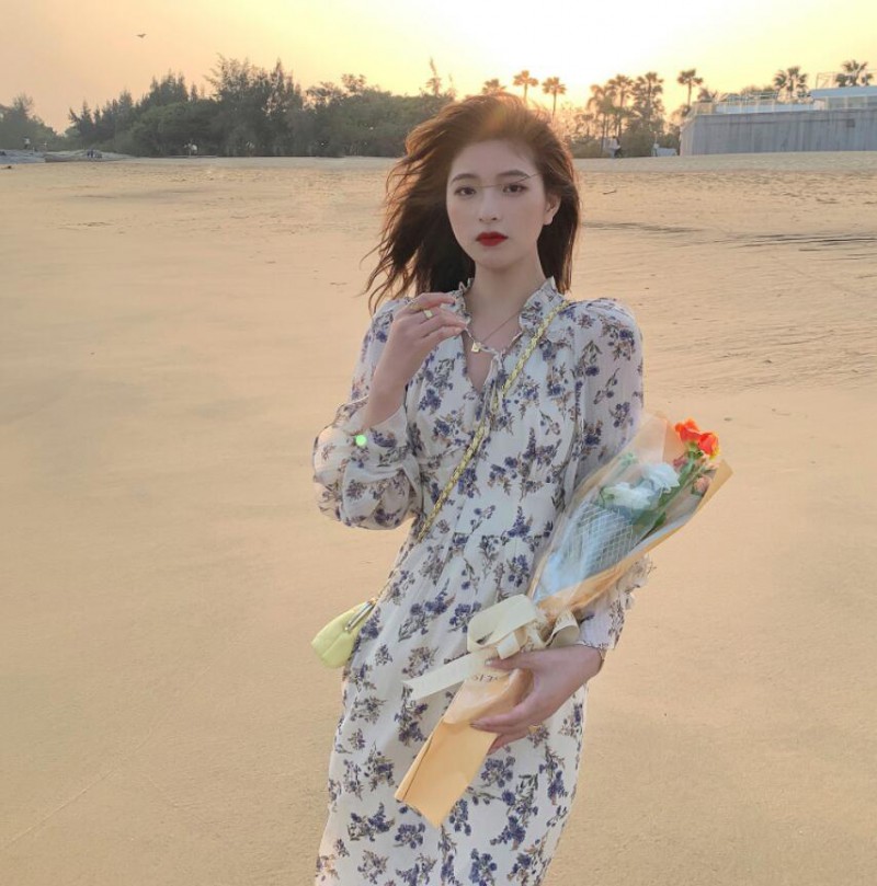红色的碎花裙是最具有风情的一个颜色,如果本身就是冷白皮的妹子穿上能白到发光,而如果是黄皮的女生也不用太担心,选择稍微暗一点的红色就能达到显白的目的了,总之红色是一个既显白又具有女人味的颜色。