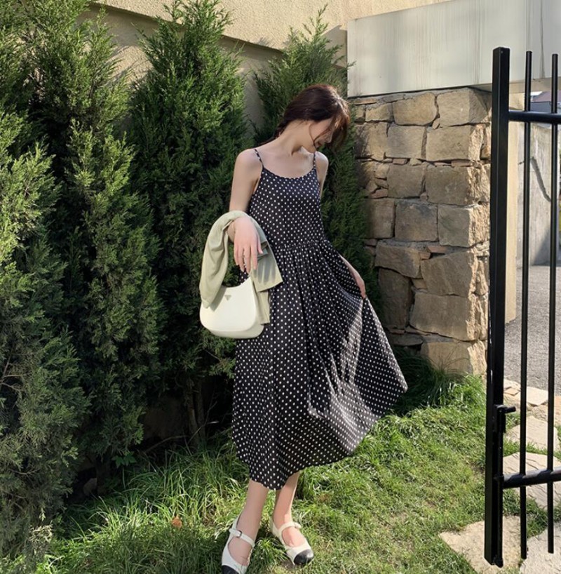 与T恤一样,衬衫也是我们日常生活中最常见最受喜爱的单品之一,几乎可以与任何单品进行搭配或叠穿。衬衫的版式非常的休闲随性,可以轻松打造出率性休闲的出街风,正好可以中和一下吊带裙偏妩媚性感的女性风格。吊带裙的精髓就在于露出漂亮的肩颈线条,以及若隐若现的乳沟,展露一种说不清的风情万种,如果你不喜欢这种性感风格的话,将吊带裙与衬衫叠穿是最保险的一种搭配方式喔。我们还可以适当地解开衬衫的几颗扣子,适当露出一点点的锁骨肌肤,或者还可以露出半只肩膀,这样既展露了清凉与性感,又不会显得太过暴露。