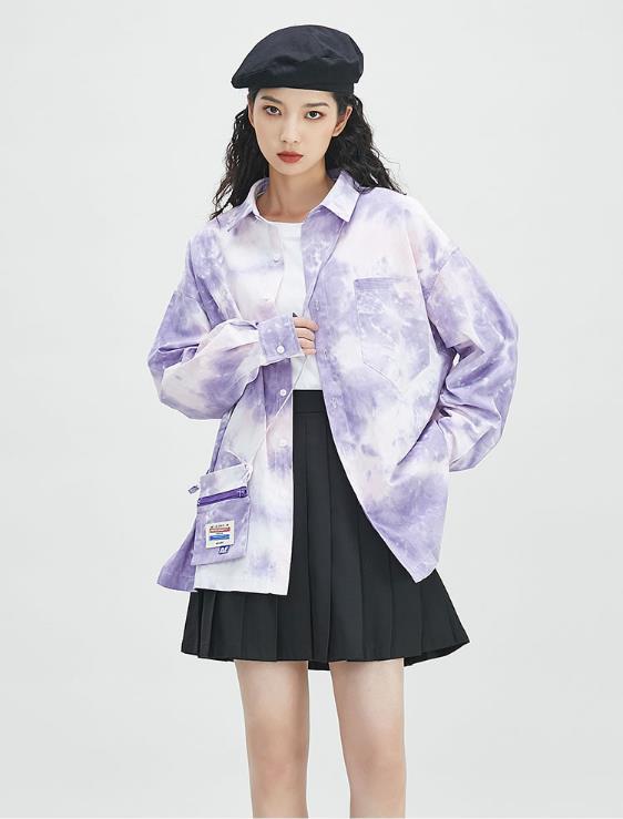 当然,这样穿时衬衫一定要足够宽松,紧贴在身上是穿不出这种随意轻松的效果的。而且打底衫的颜色要和衬衫错开,反差越大越时髦。