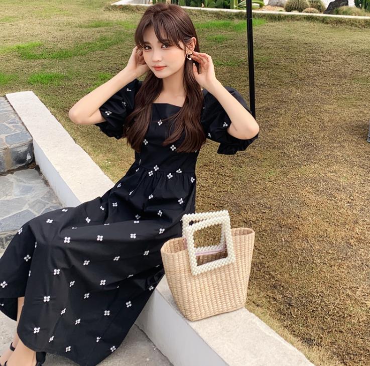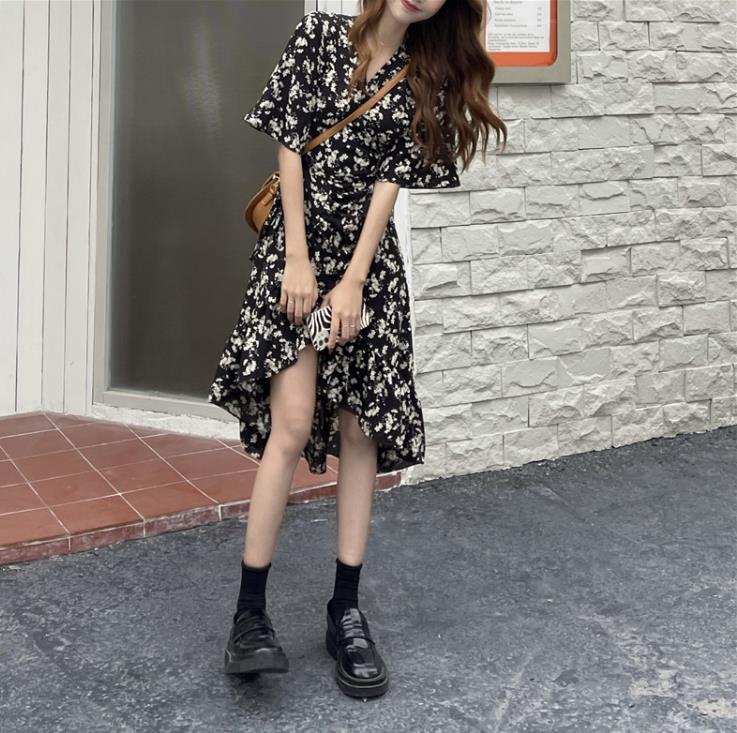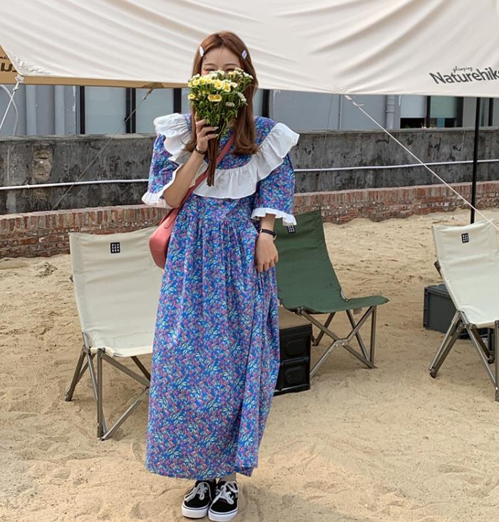 留白感也不仅仅在于领口,很多裙子都会借鉴一些经典的时尚元素,比如旗袍常用的开叉设计。 碎花裙长款的比较多,所以适当的留白会打破她的单调感,比如这件就是用了领口和开叉的元素,让上下身的留白元素就很突出,也会增加几分女性独有的魅力感,让你选择这种长款的裙子,走起路来也会更加方便。