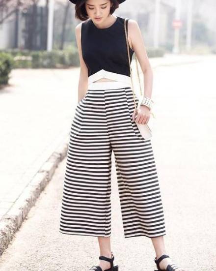 A形体型女生推荐款:经典条纹短袖,泡泡袖设计完美遮住窄肩缺点,包臀高腰短裤让臀部变得更丰满,整个设计修饰出纤细小蛮腰和性感翘臀,展现出完美的身材。