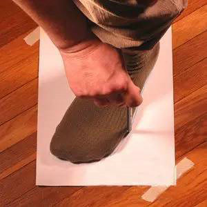用笔顺着脚的轮廓画,让笔直立和垂直于纸面上,不要倾斜或用角度握住笔。确保铅笔紧贴住你的脚,铅笔和脚之间不要产生缝隙。