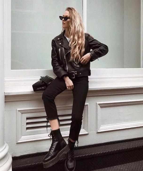 4. 搭配西装裤 拿马丁靴搭配西装裤,真的很少有人会这么去搭配,但是懂这种搭配的,才能get到这种穿搭的美。西装裤能很好的修饰我们的腿,让我们的腿看起来非常的直并且细。在街上走着,能吸引一群人的注意哦。喜欢的可以来尝试一下。