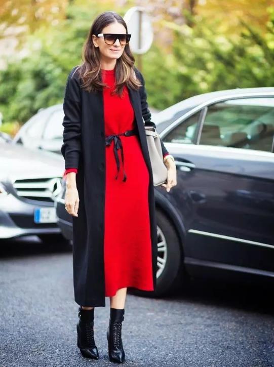 3.红色衣服撞色搭配大衣