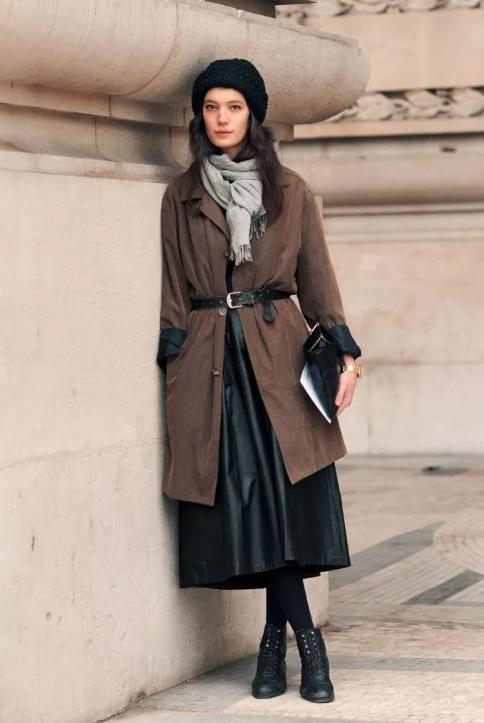1. 保暖技巧:裙子+保暖打底裤 打底裤是很多女生在冬天的时候会穿的一种保暖神器,在冬天的时候穿裙子就可以将保暖打底裤穿在里面,这样保暖效果很好,如果觉得黑色的打底裤穿着会让整体的穿搭看起来不是那么时髦的话可选择穿肤色的打底裤,这样看起来和露腿是没有差别的哦,很好凹造型,整个人也会看起来好看很多,保暖的同时显瘦帮你完成整体的时尚感。