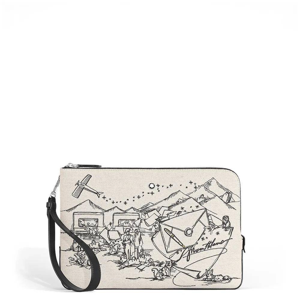 该系列将经典叙事融于日常实用设计,每件作品均饰有手绘插画,灵感源自万宝龙典藏档案中的一则经典广告。如今,这对标志性的旅人身影被重新诠释于勃朗峰脚下,复古交通工具与翱翔信笺构成充满意境的旅途图景,深刻诠释书写如何作为跨越时空的情感纽带,连接彼此心灵、传递隽永心意。