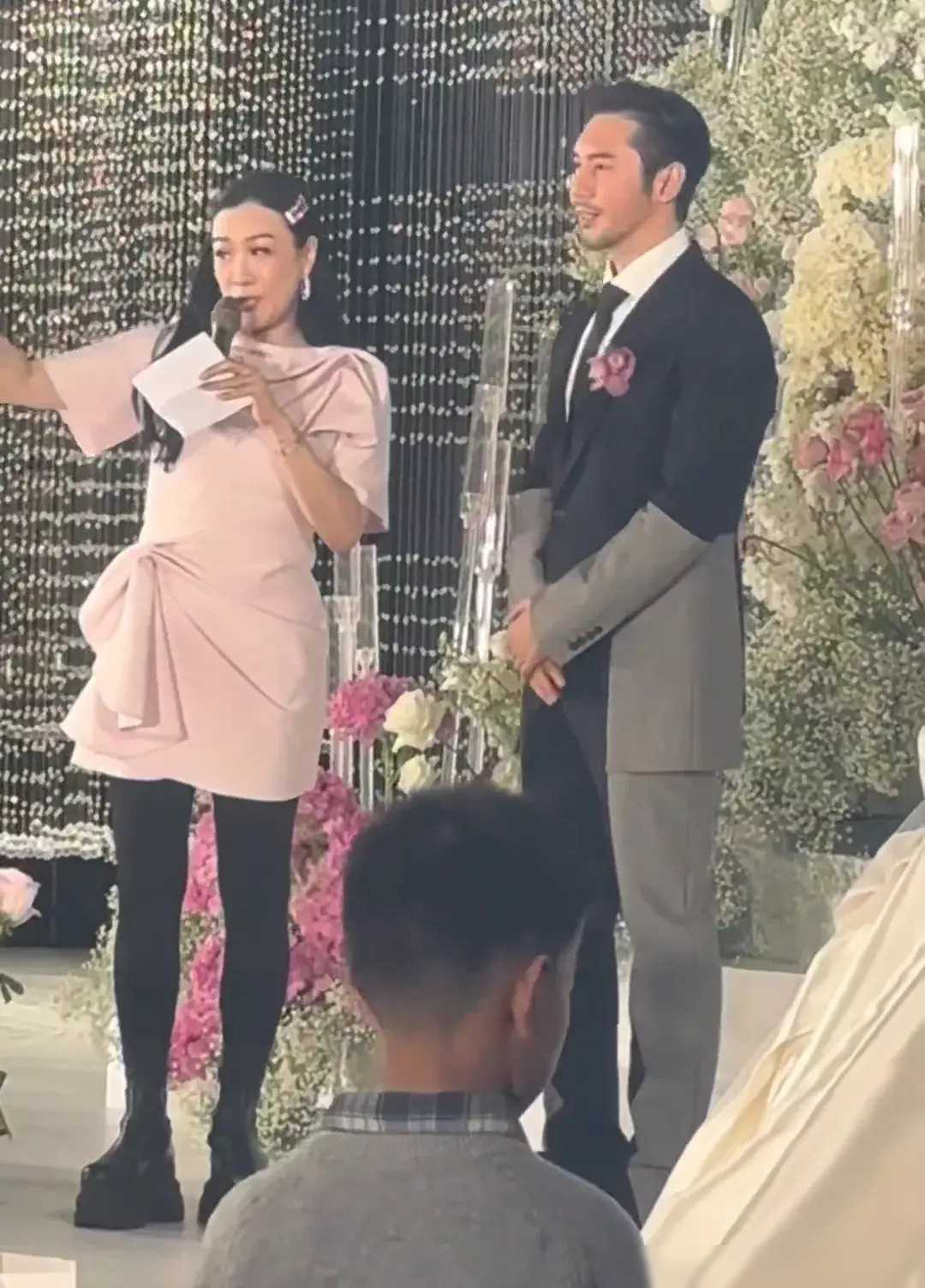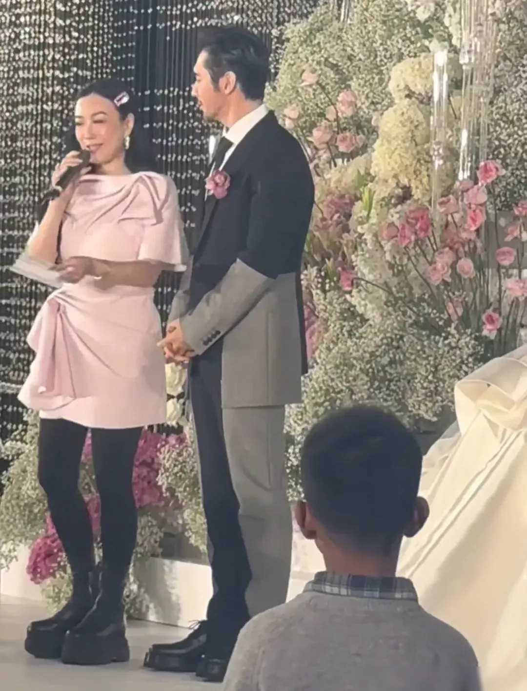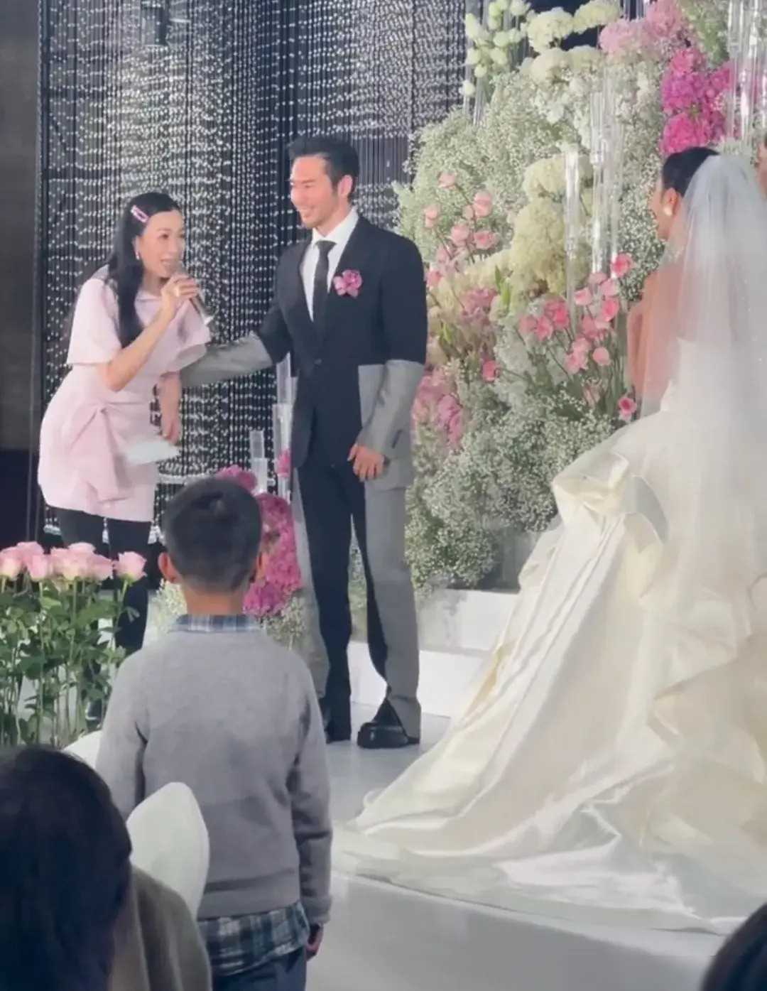 令人惊喜的是,婚礼现场传来了新娘是韩国人的消息。钟丽缇在祝福新人时展现了她的多语才华,用流利的韩语表达了深情祝福之情。这份亲切和热情也体现在她对新人和宾客们的鞠躬致谢,一点明星架子都未曾露出。