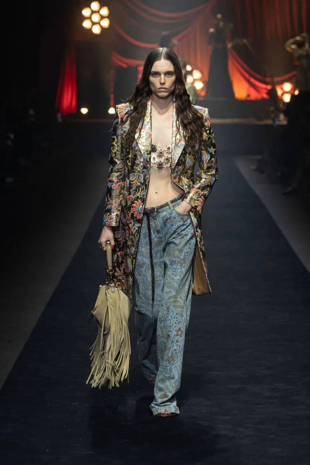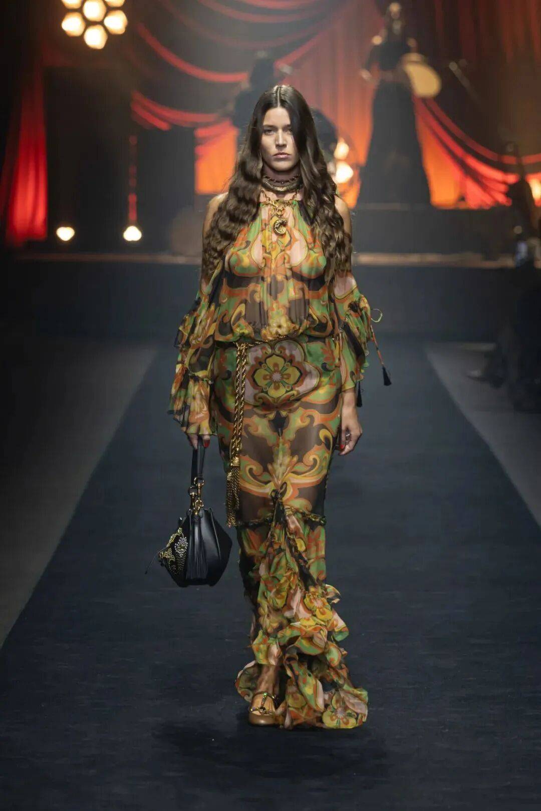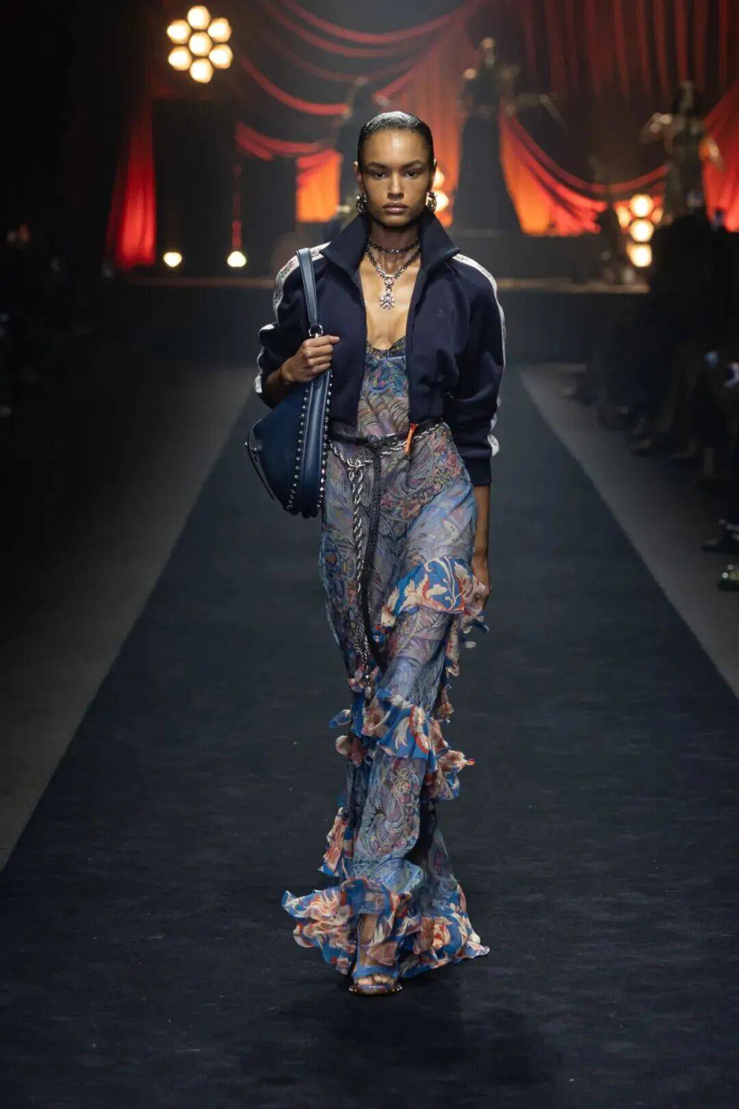 米兰时装周上,Etro创意总监马可·德·文森佐用一场名为 “FLUX-流动美学” 的盛宴,彻底打破了时尚界对极简主义的迷恋。这场秀在意大利歌手La Niña del Sud充满原始张力的表演中拉开帷幕,她那融合了政治宣言、炽热情感与南意女性灵魂呐喊的歌声,不仅是背景乐,更是点燃整个系列的灵感火花。