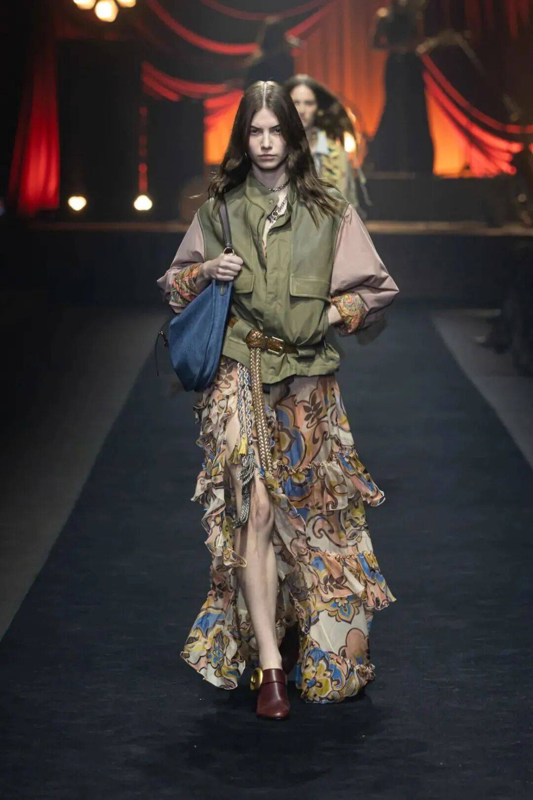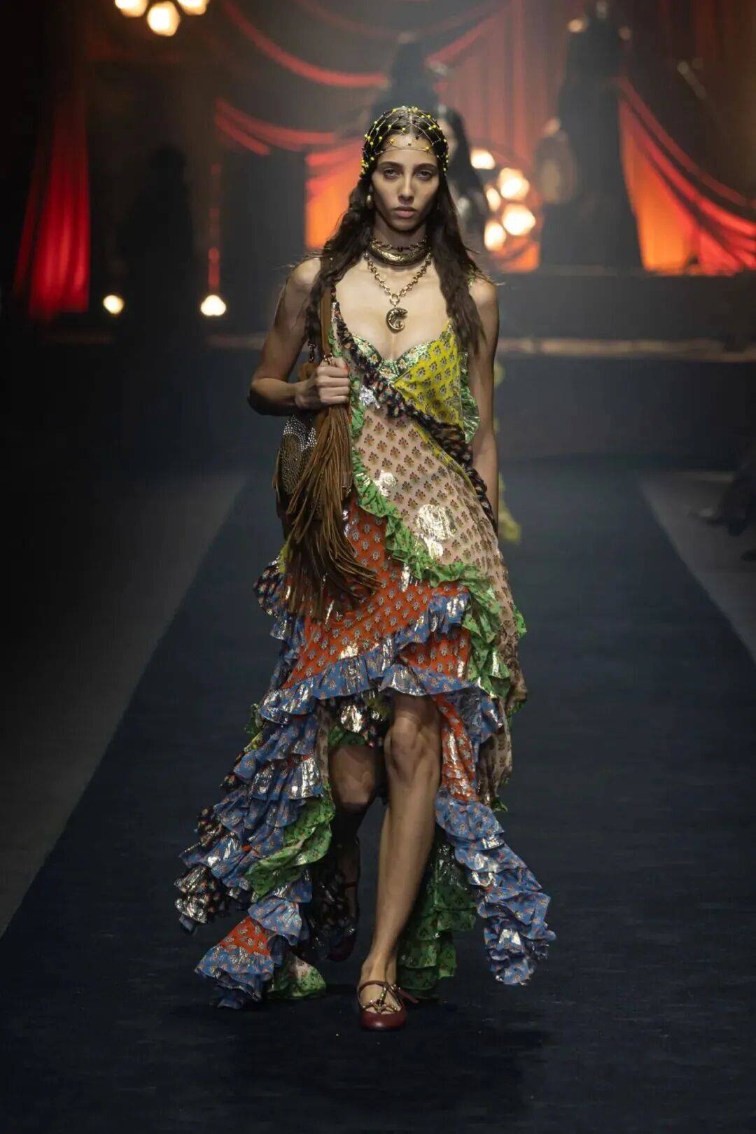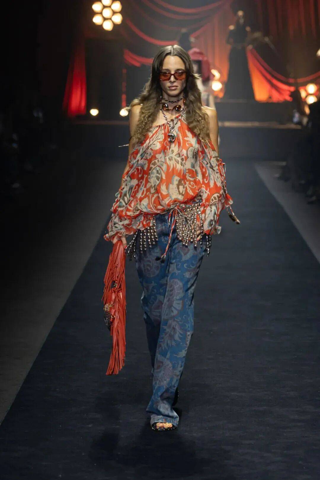 米兰时装周上,Etro创意总监马可·德·文森佐用一场名为 “FLUX-流动美学” 的盛宴,彻底打破了时尚界对极简主义的迷恋。这场秀在意大利歌手La Niña del Sud充满原始张力的表演中拉开帷幕,她那融合了政治宣言、炽热情感与南意女性灵魂呐喊的歌声,不仅是背景乐,更是点燃整个系列的灵感火花。