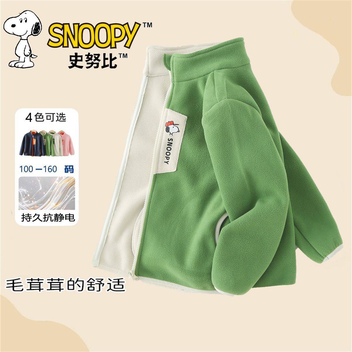 史努比宝宝摇粒绒外套秋装新款上市啦!这款儿童加绒上衣采用柔软亲肤的摇粒绒材质,保暖舒适,适合春秋冬三季穿着,轻盈不厚重,宝宝活动更自在。经典史努比印花设计,时尚可爱,男女童皆宜,中大童尺码齐全,满足不同年龄段需求。