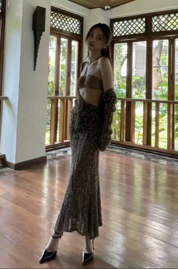 明星除了日常穿搭之外,还会有活动穿搭、或者为某品牌的特定穿搭。有时候她们出于品牌方的要求,穿搭会非常新潮前卫。吴宣仪这一套毛衣裙就非常前卫,前方完全敞开,看起来非常随心慵懒,下坠感带来一种松弛感。不过,这种前卫的设计一般不会用于日常穿搭。