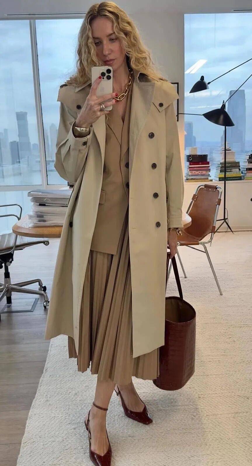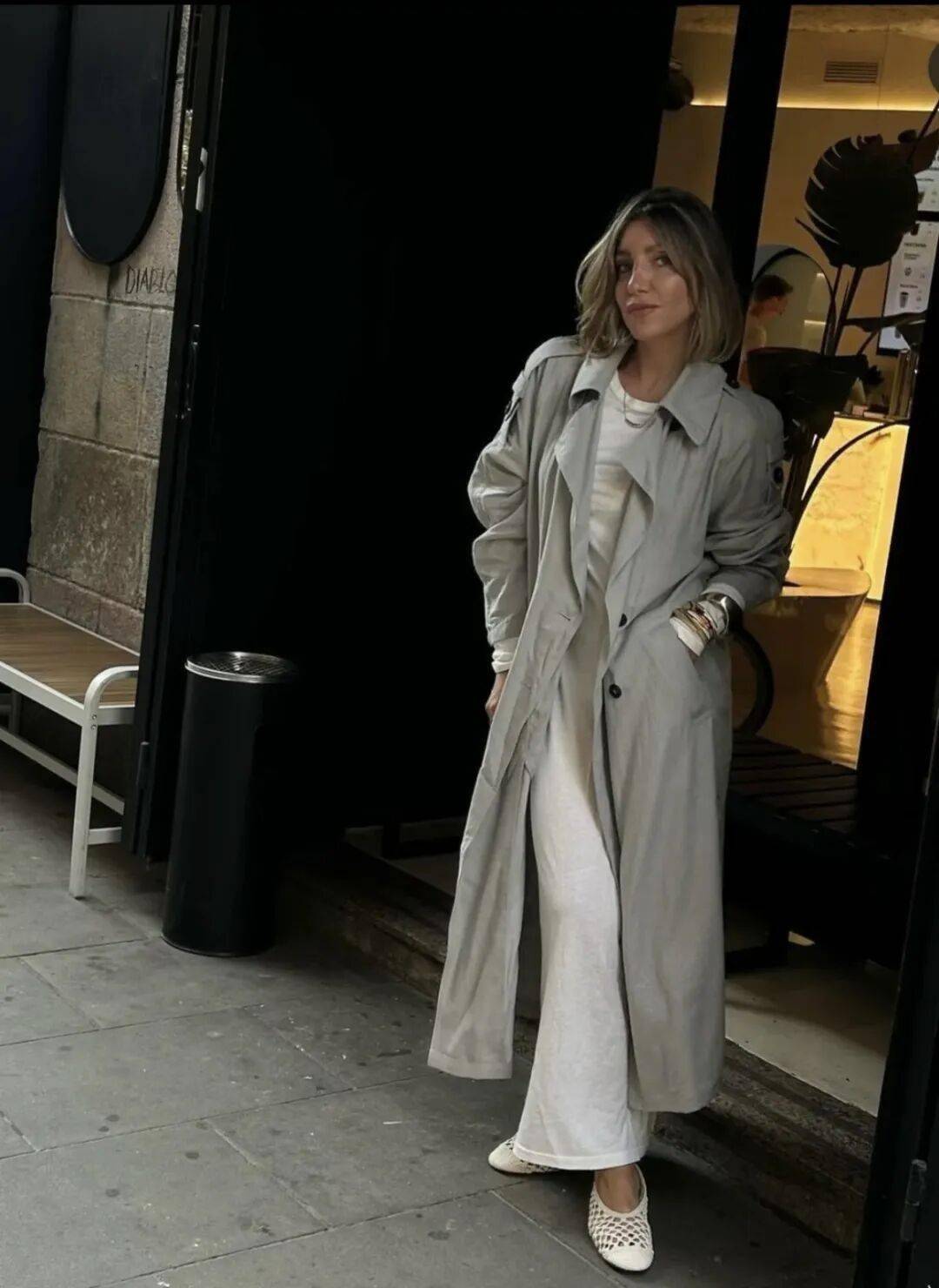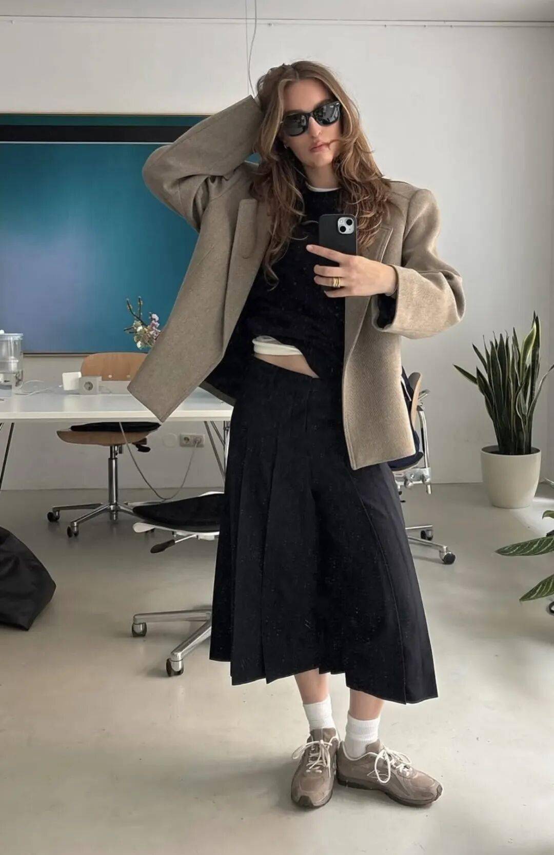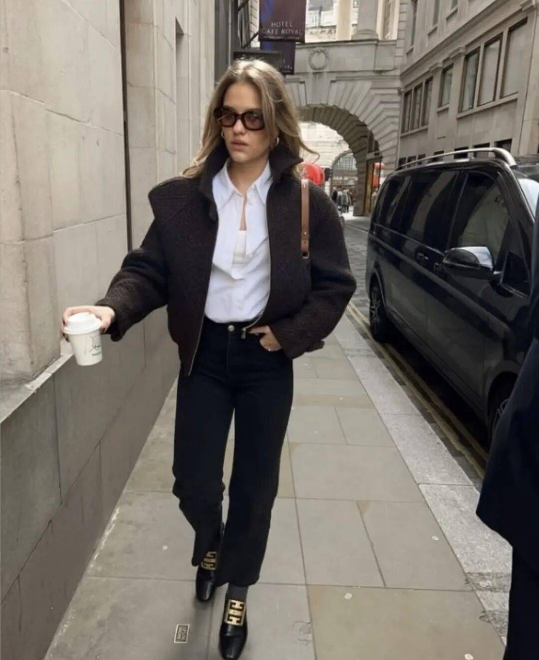 Boxyfit衬衫+薄针织衫+oversized大衣或风衣,随意中带逻辑。