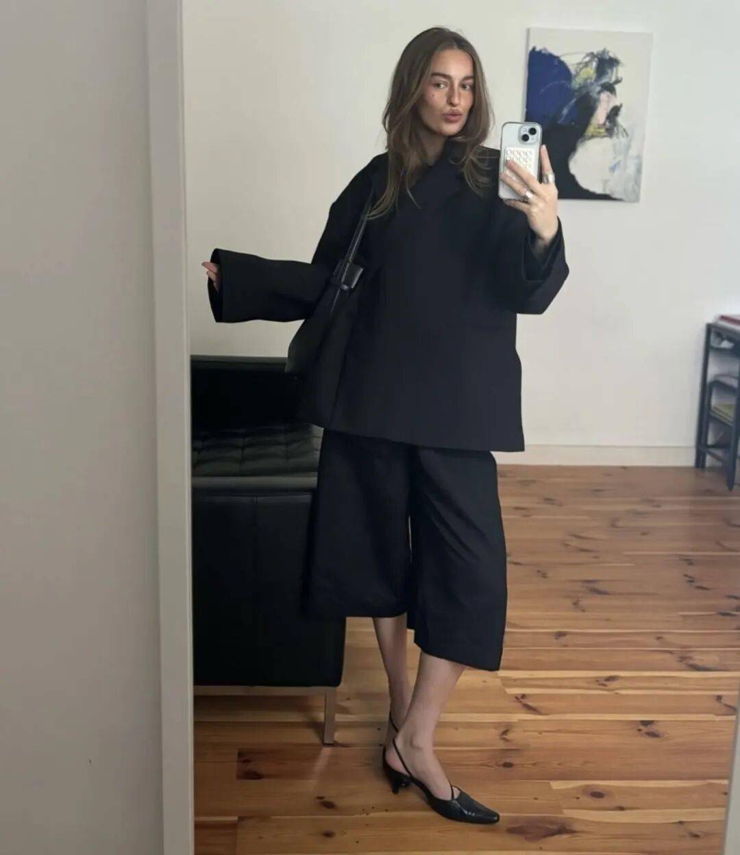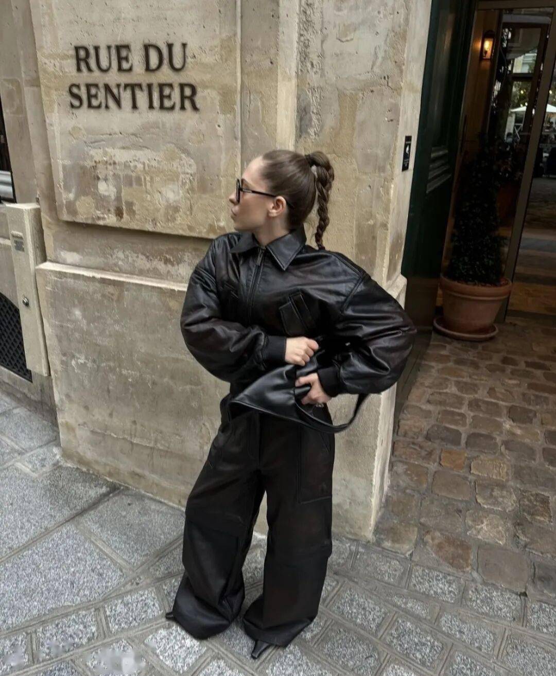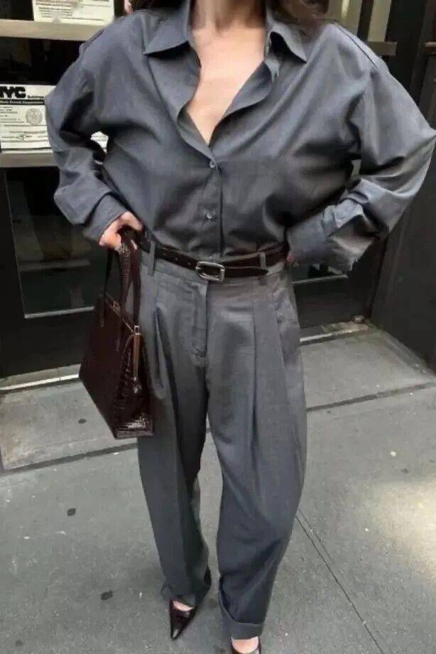 Boxyfit 西装、方形短上衣、宽肩大衣、直筒长裤是首选。注意:廓形不是“买大一号”,而是注重结构与比例。