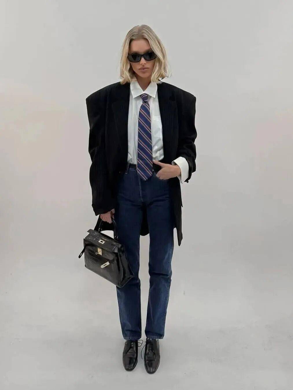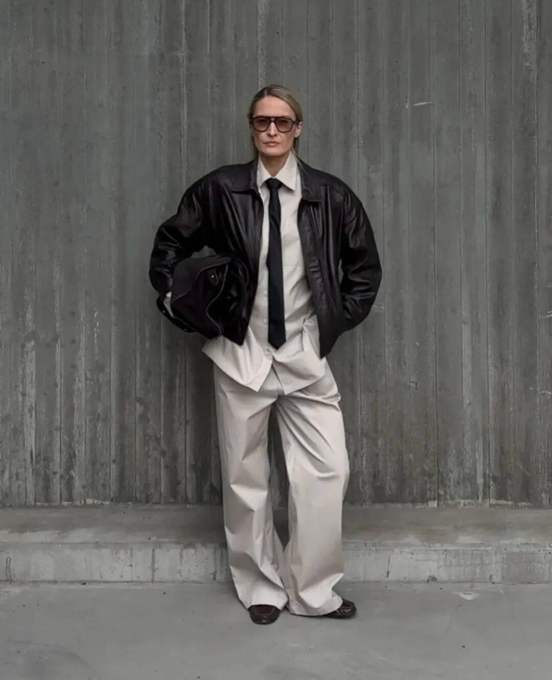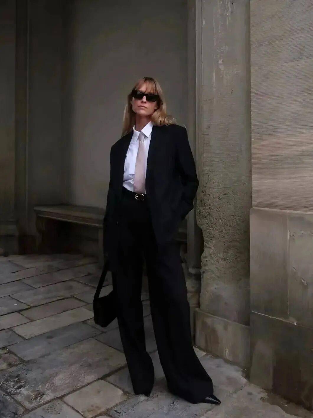 这一风格的灵感源于80、90年代的“权力着装”(Power Dressing),但如今的设计更注重实穿性与个性化。宽肩线依旧存在,但材质更轻盈,剪裁更立体,搭配也更富层次。它不再是为了“看起来很强”,而是为了“穿出自己”。