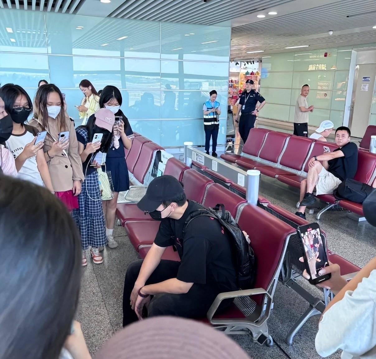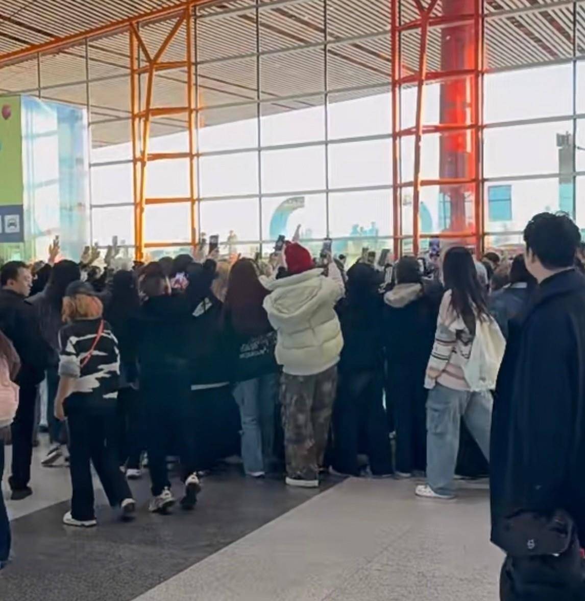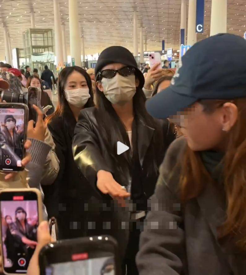 尽管有随行工作人员护驾,仍难以抵挡汹涌人潮。手机镜头几乎贴到艺人脸上,整个航站楼的通行都受到严重影响。