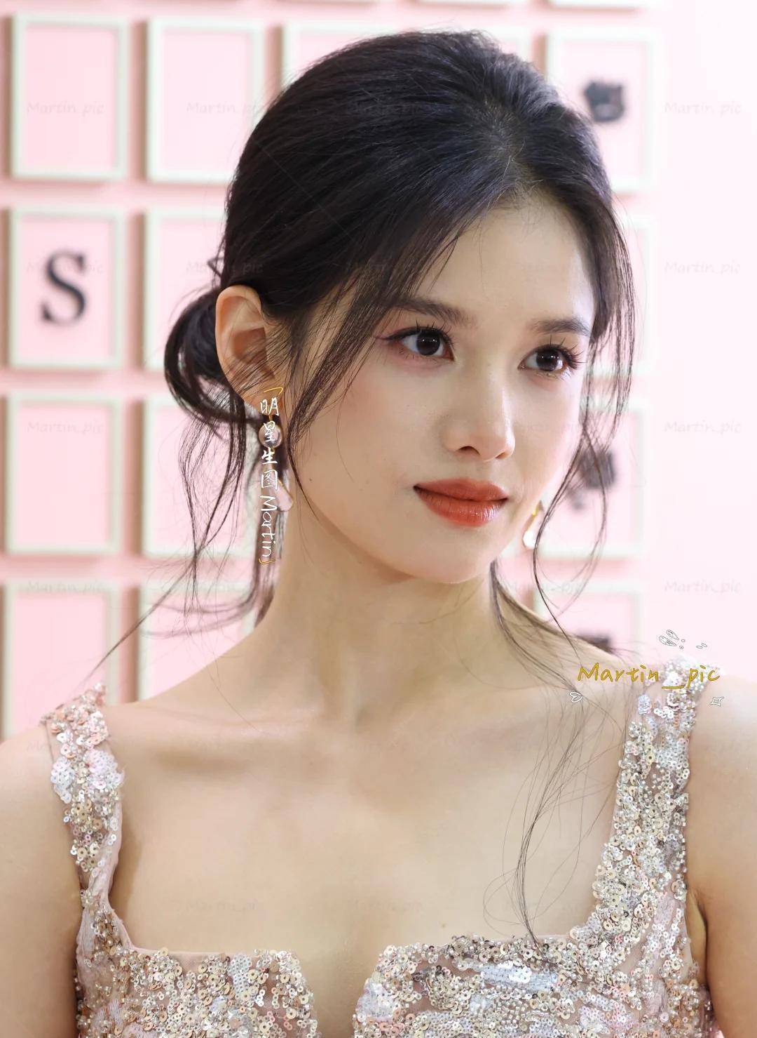 活动当天她的状态极佳,透过镜头都能感受到那份惊艳:柔和的眼眸、挺拔的鼻梁与饱满的唇形相得益彰,即便身着深V剪裁的礼服也丝毫不显媚俗,反而衬托出优雅气质。