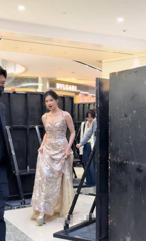 日前,张婧仪在杭州某商业活动中亮相,引来大批影迷驻足。她身着一袭银灰色细肩带礼服,发髻轻挽,整体造型兼具现代设计感与古典韵味。行进间裙摆摇曳生姿,不时好奇地环顾四周,展现出灵动俏皮的一面。