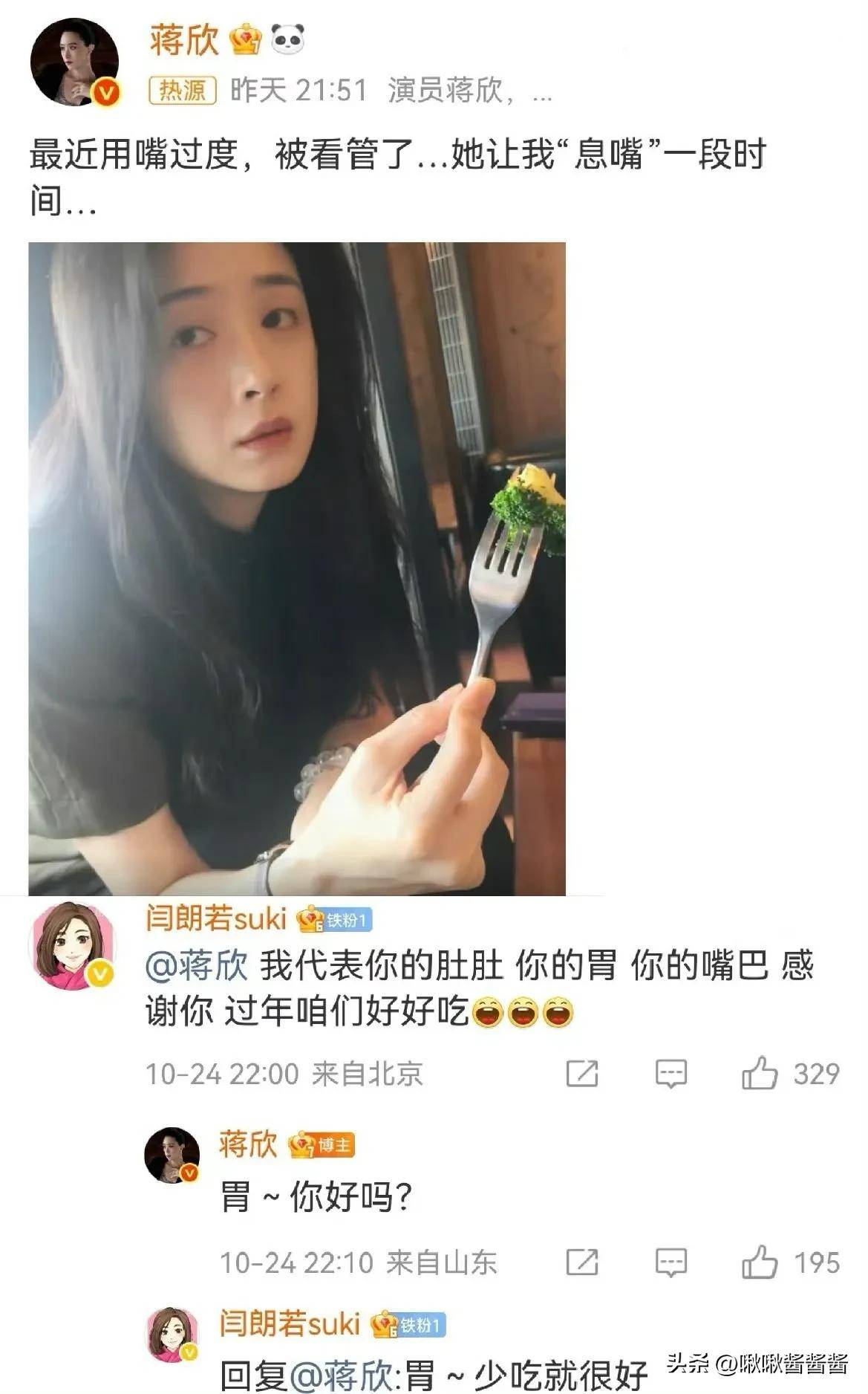 不少网友在评论中提到,长期的节食和吃素可能导致情绪波动,蒋欣这次的情绪崩溃,也让大家感受到她减肥背后的巨大压力。作为一位身高171厘米的大骨架女星,蒋欣天生容易发胖,而且热爱美食的她也一直是个不折不扣的吃货。