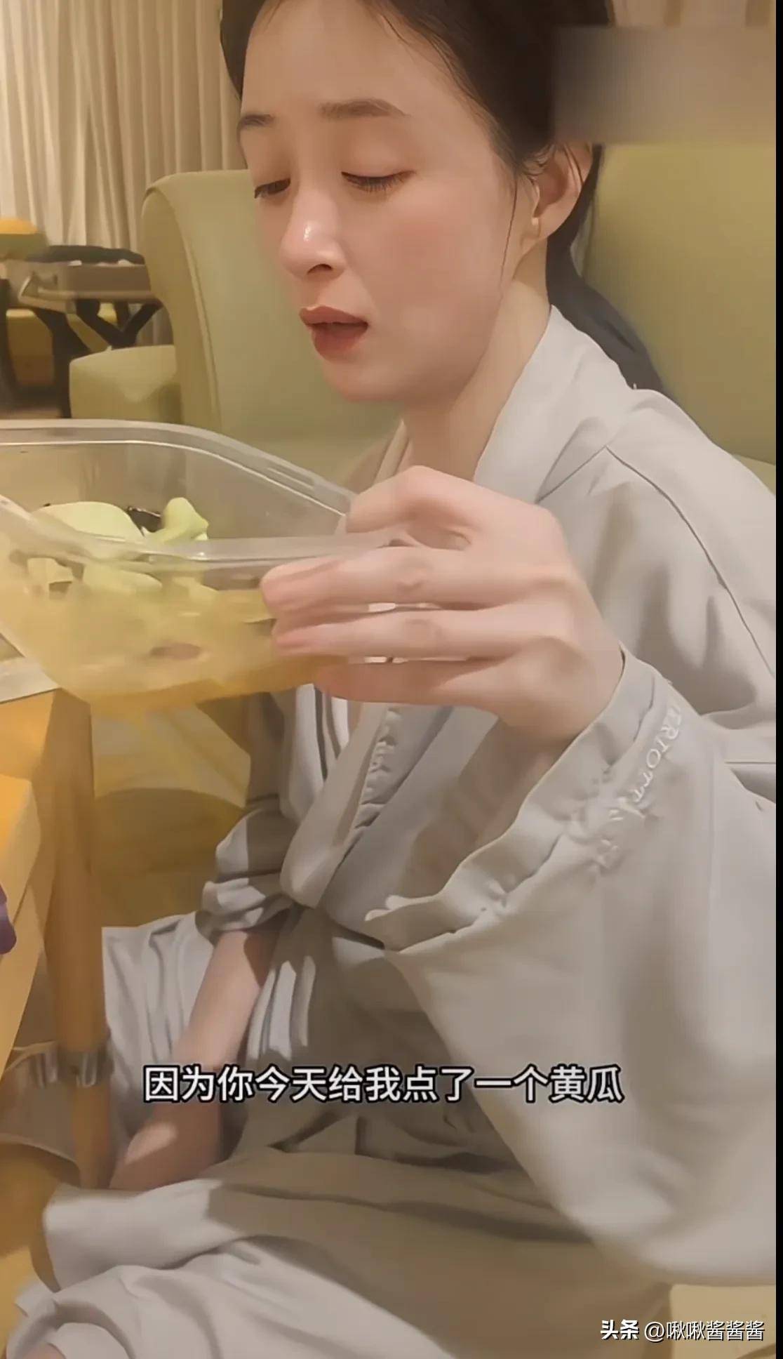 她还向大家展示了自己的减肥餐:一盒简单的凉拌黄瓜。尽管如此,她依然感到满足,并特别感谢助理为她准备了这道菜,因为其中还有汤汁。“礼服是自己挑的,不想让人觉得不好看,也不想让人觉得我胖,但是我胳膊依然能比大腿还粗!从小到大我就是这样,健壮得不得了,我已经尽力了。”她如此自嘲着,眼中却依然闪烁着坚韧的光芒。