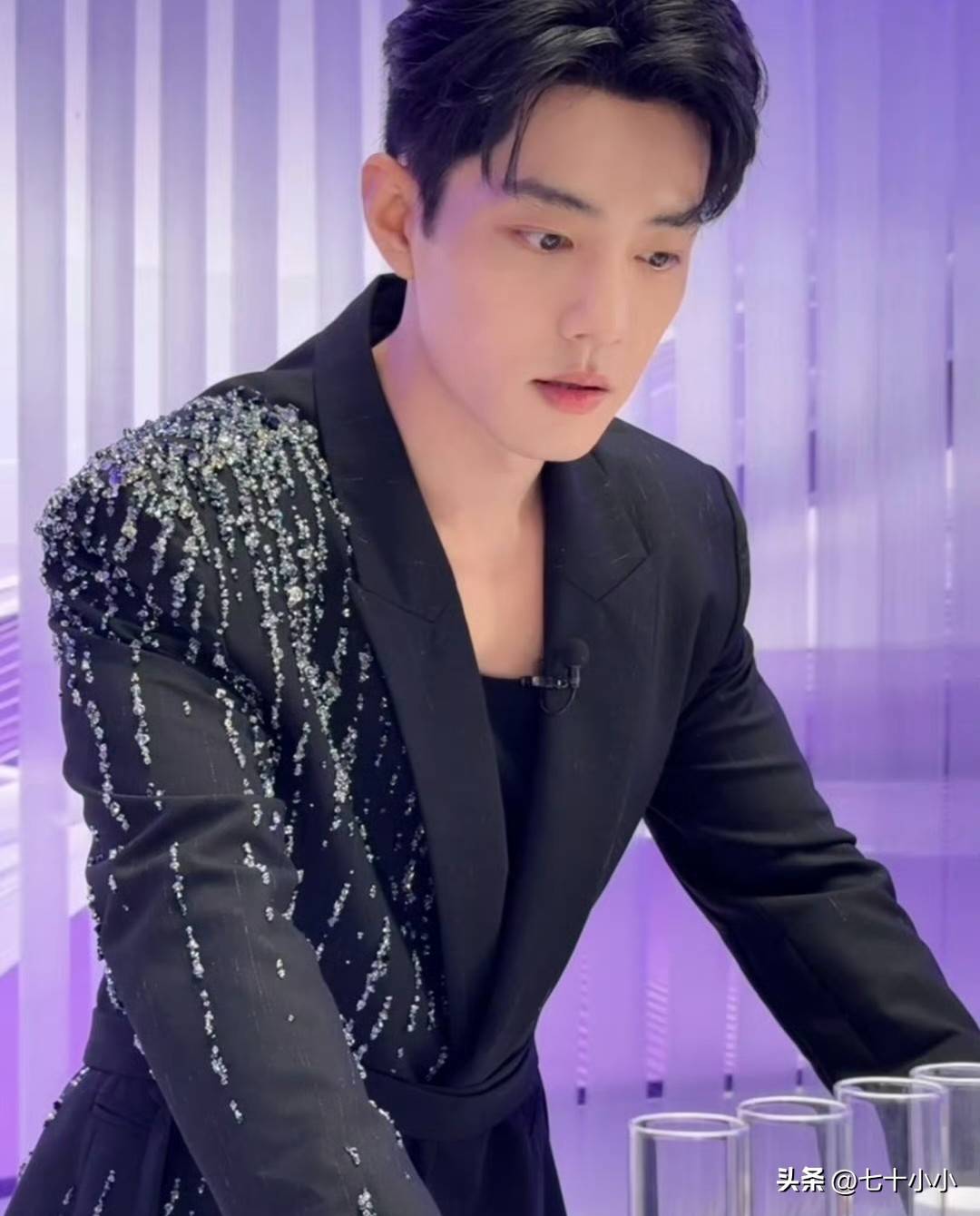11月7日晚19:30,肖战作为NARS全球品牌代言人,亮相了品牌的直播活动。他的出现再次引起了粉丝们的热烈关注。此番亮相,肖战身穿一套黑色束腰西装,西装上点缀着精致的碎钻配饰,设计灵感来源于“宇宙流星”。这种独特的搭配让他仿佛把璀璨星光穿在了身上,尤其是收腰的设计,更加凸显了他完美的身材比例。无论如何描述,肖战的外形依旧帅气得让人窒息,简洁却不失高级感,极具贵气,给人一种干净利落又轰烈的感觉。