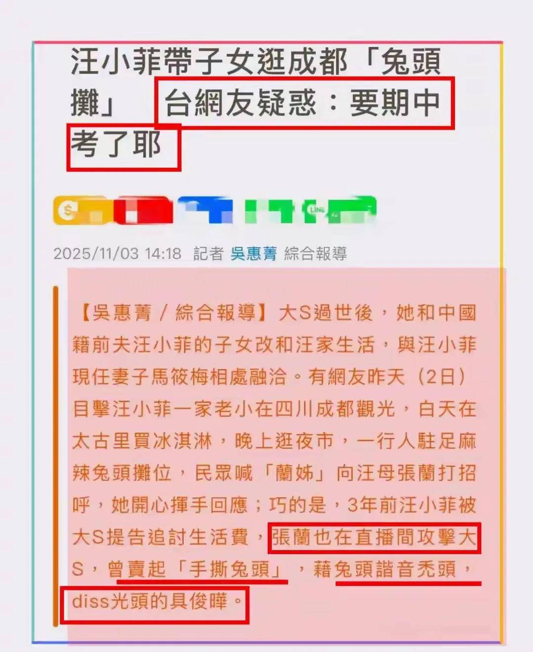 暑假时,孩子们决定去巴厘岛旅行,张兰考虑到费用需要三四万元,便最终决定放弃这次行程。然而在一次直播中,张兰不小心曝光了孙子的正面照片,结果遭到了汪小菲的批评。虽然两人已经离婚多年,但汪小菲依旧在心里坚守着承诺,尽最大努力履行责任,似乎他做这一切不仅仅是为了履行一个承诺,更是在让已故的前妻大S安心。