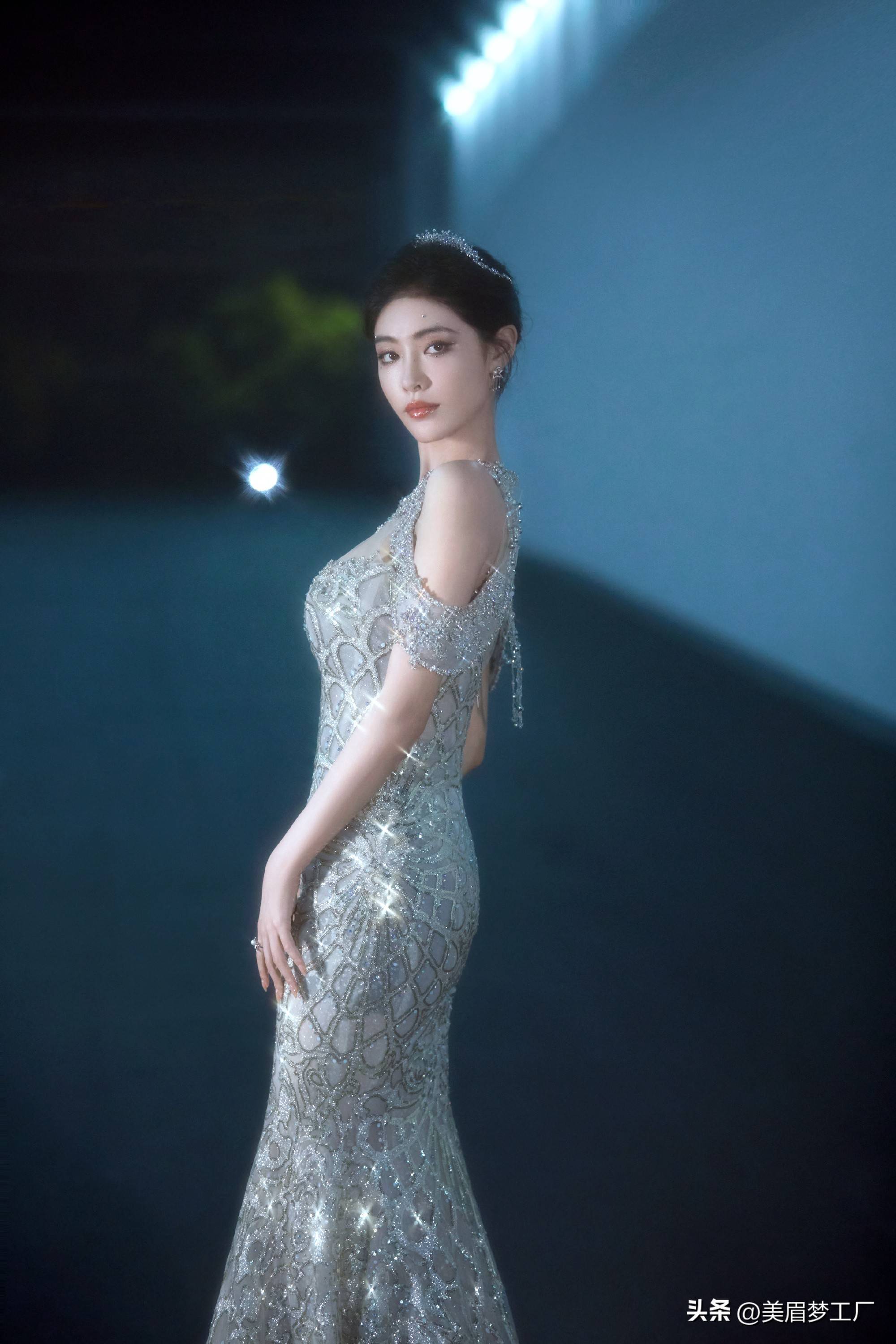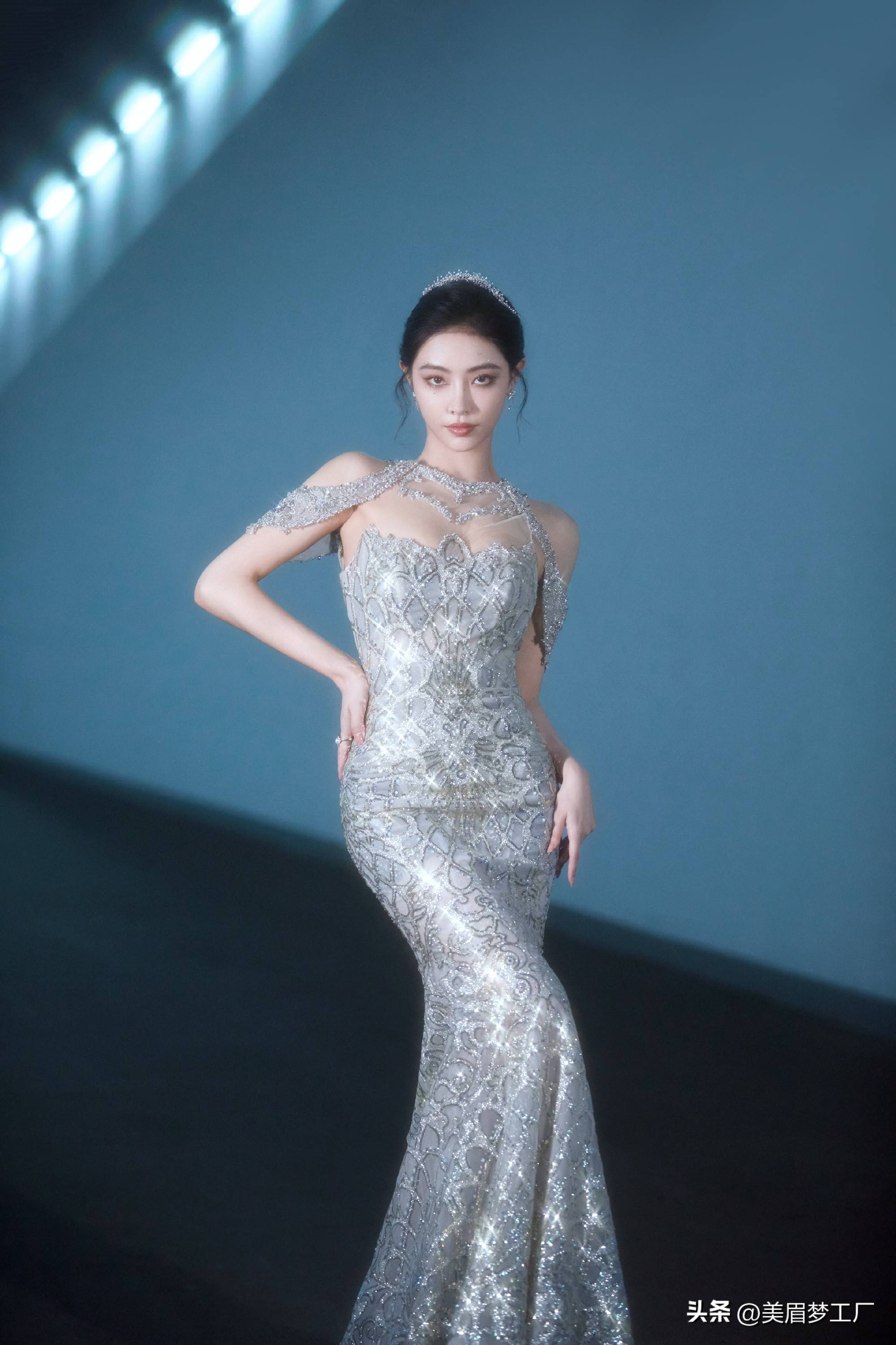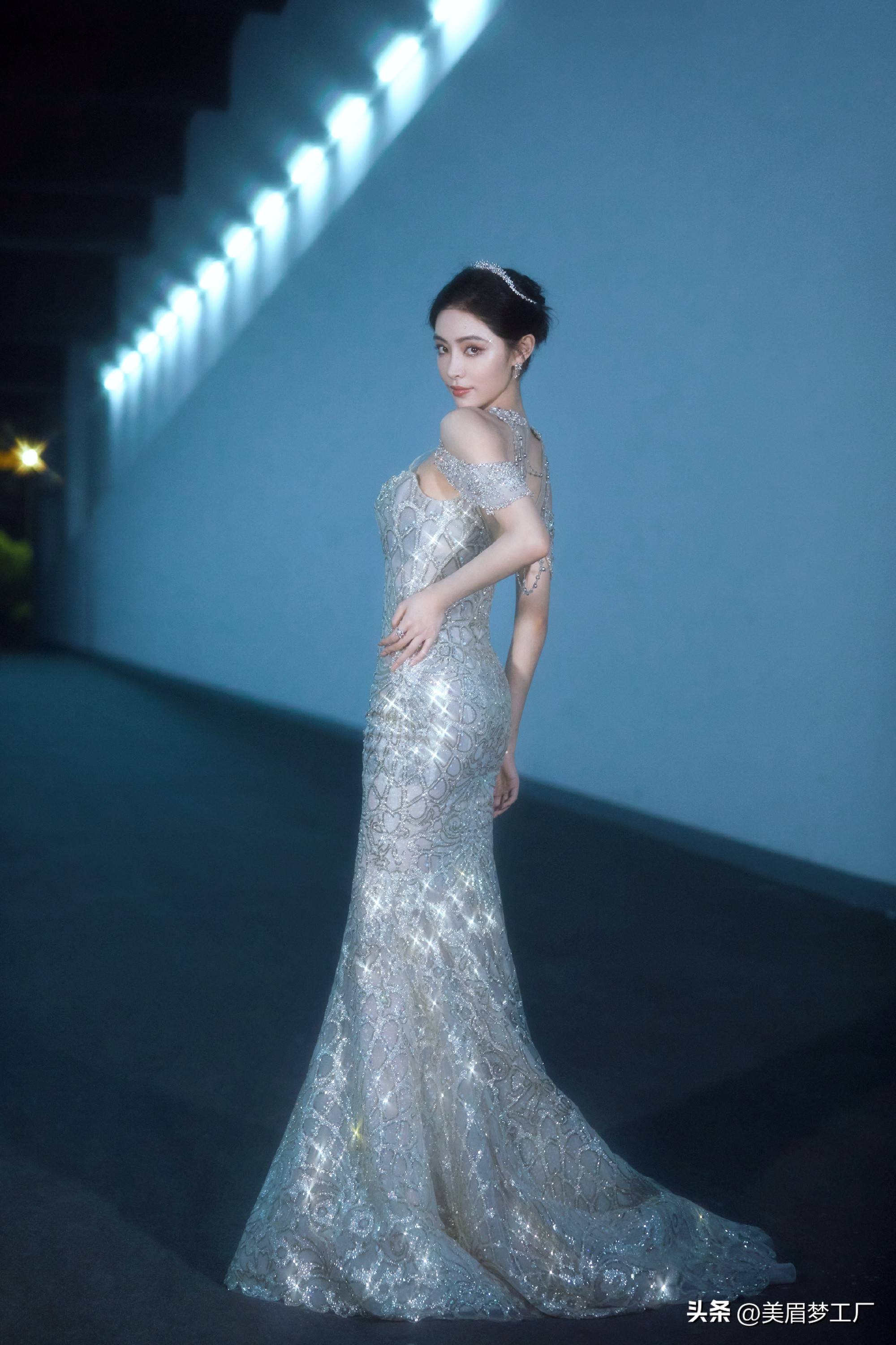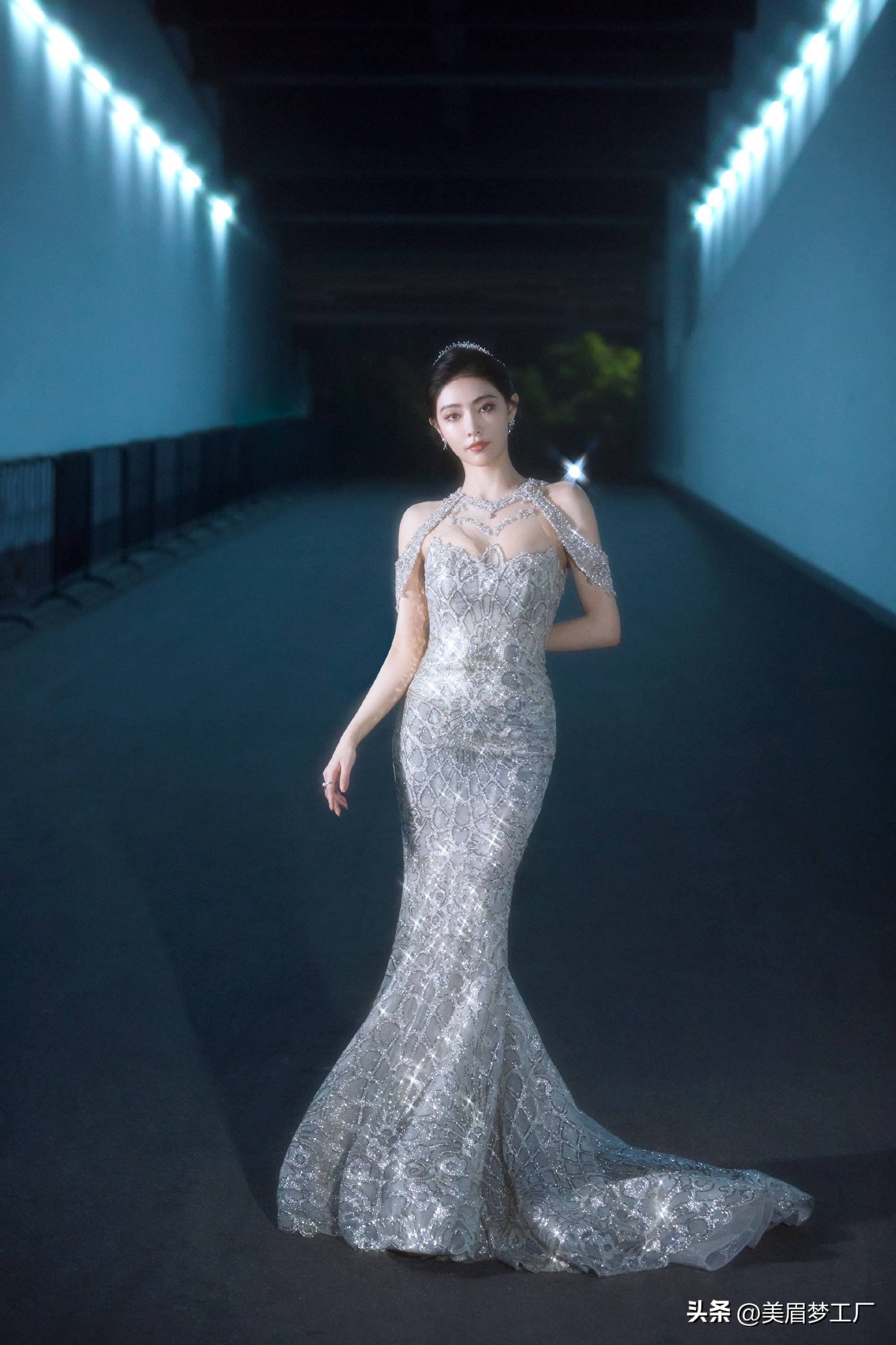 银色露肩长裙犹如天边的一弯新月,巧妙地描绘出许佳琪的曼妙身姿。那露肩设计,如同春风吹过柳枝,轻轻展示了她优雅的颈部线条,令人沉醉其中。长裙的流线型设计则仿佛是一曲婉转的乐章,使她的步态更加摇曳生姿,散发出高贵而优雅的气质。而那璀璨的王冠,如同繁星点缀在夜空,为她的整体造型增添了几分华丽的色彩,使她在众人中脱颖而出,成为焦点所在。