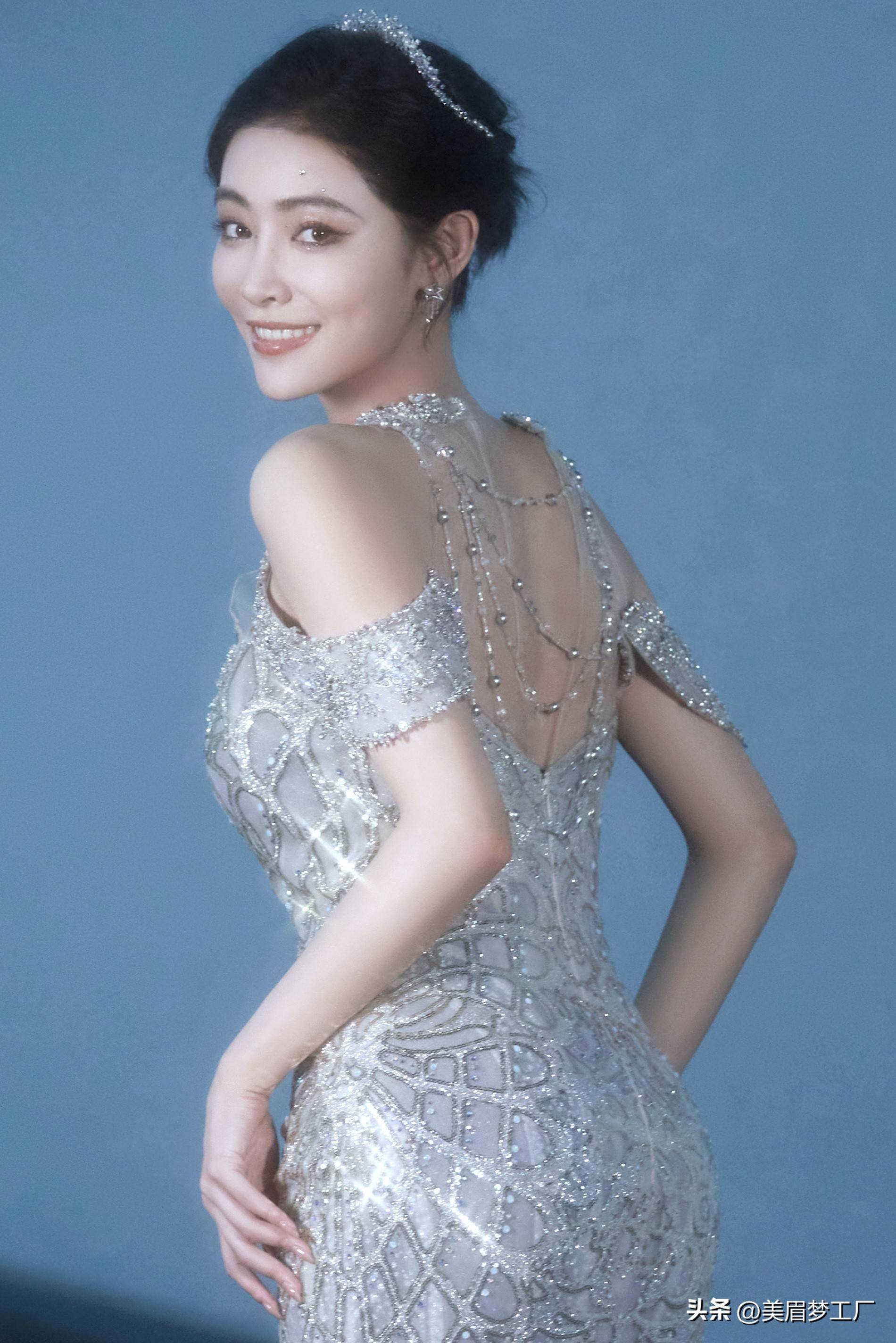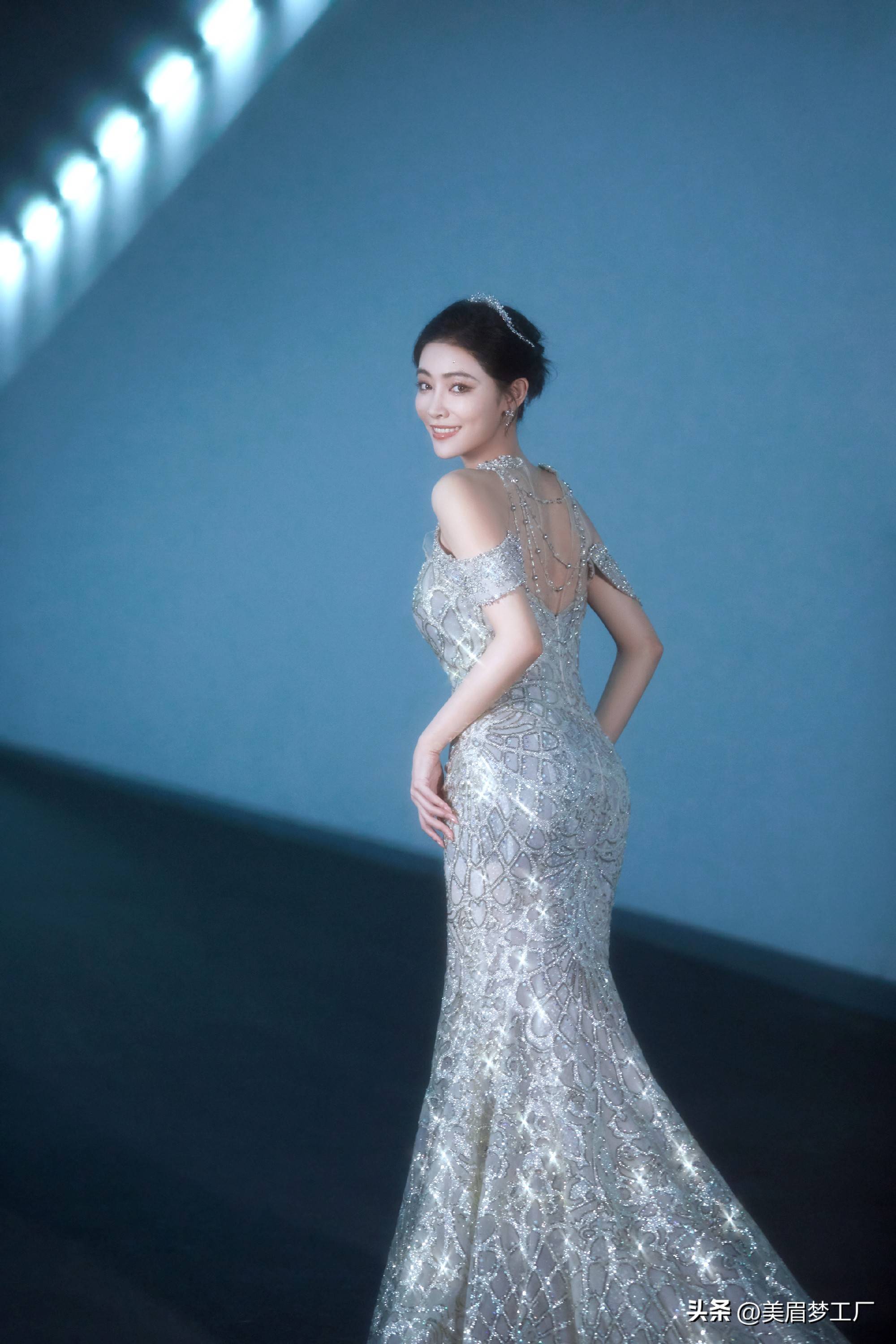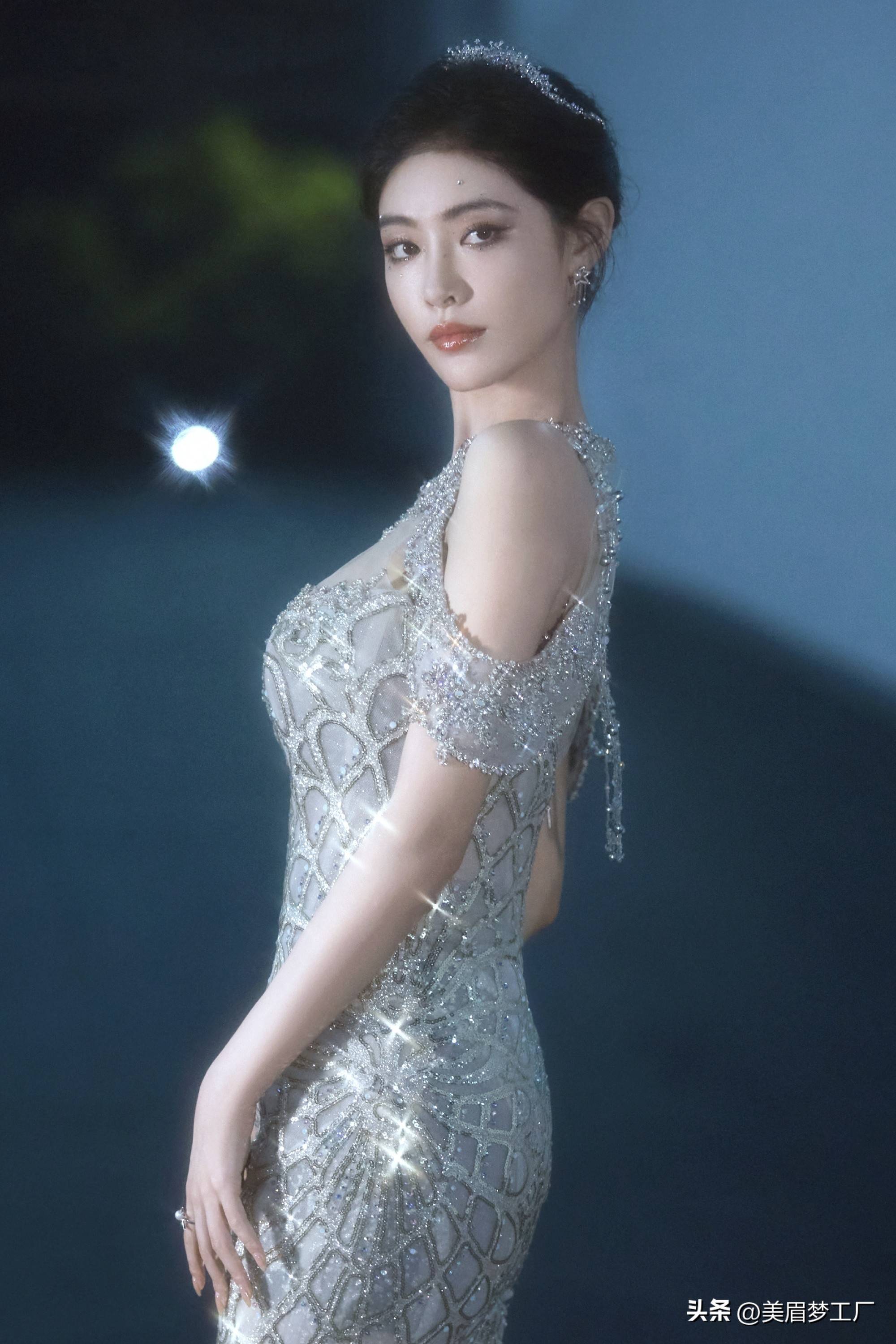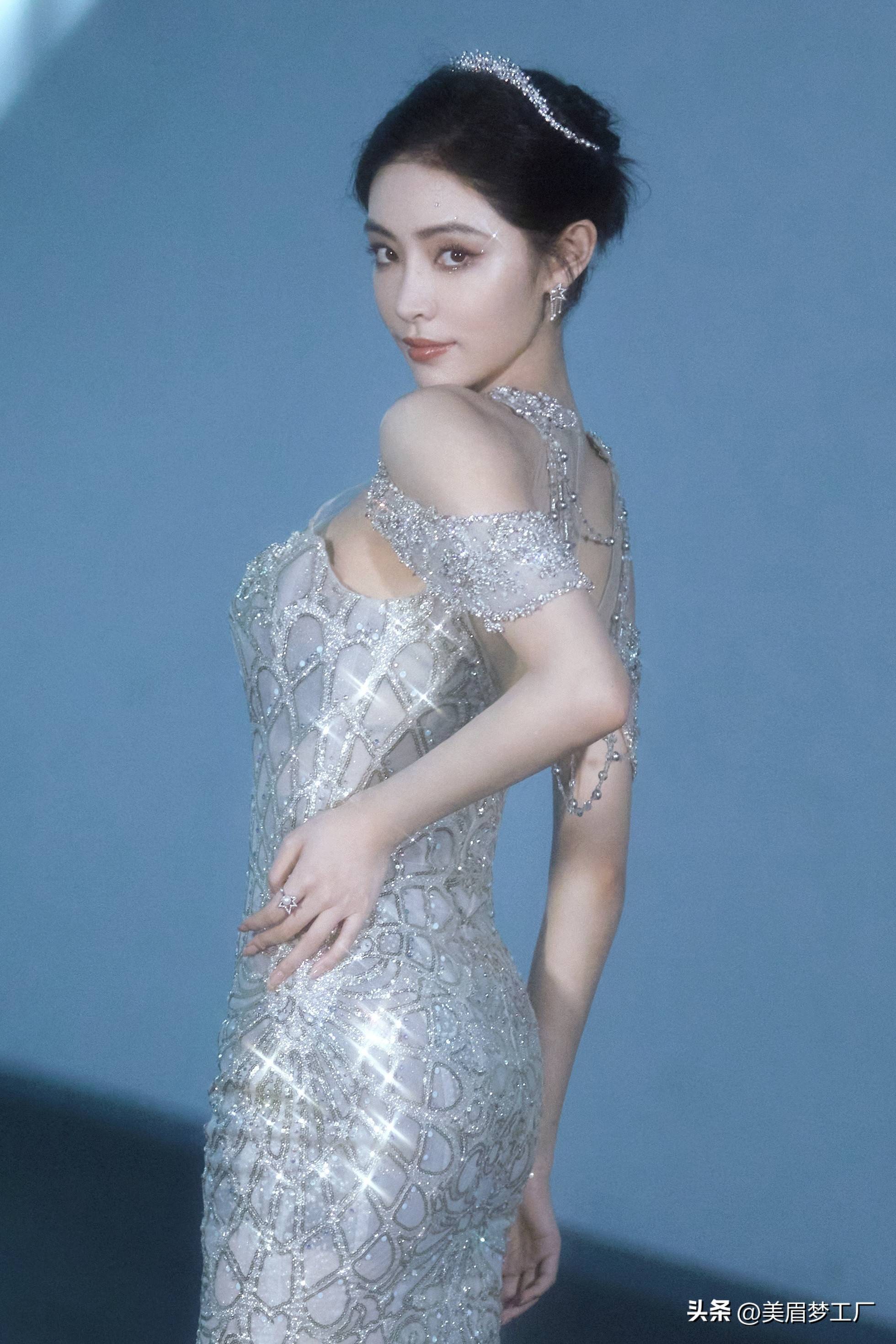 银色露肩长裙犹如天边的一弯新月,巧妙地描绘出许佳琪的曼妙身姿。那露肩设计,如同春风吹过柳枝,轻轻展示了她优雅的颈部线条,令人沉醉其中。长裙的流线型设计则仿佛是一曲婉转的乐章,使她的步态更加摇曳生姿,散发出高贵而优雅的气质。而那璀璨的王冠,如同繁星点缀在夜空,为她的整体造型增添了几分华丽的色彩,使她在众人中脱颖而出,成为焦点所在。