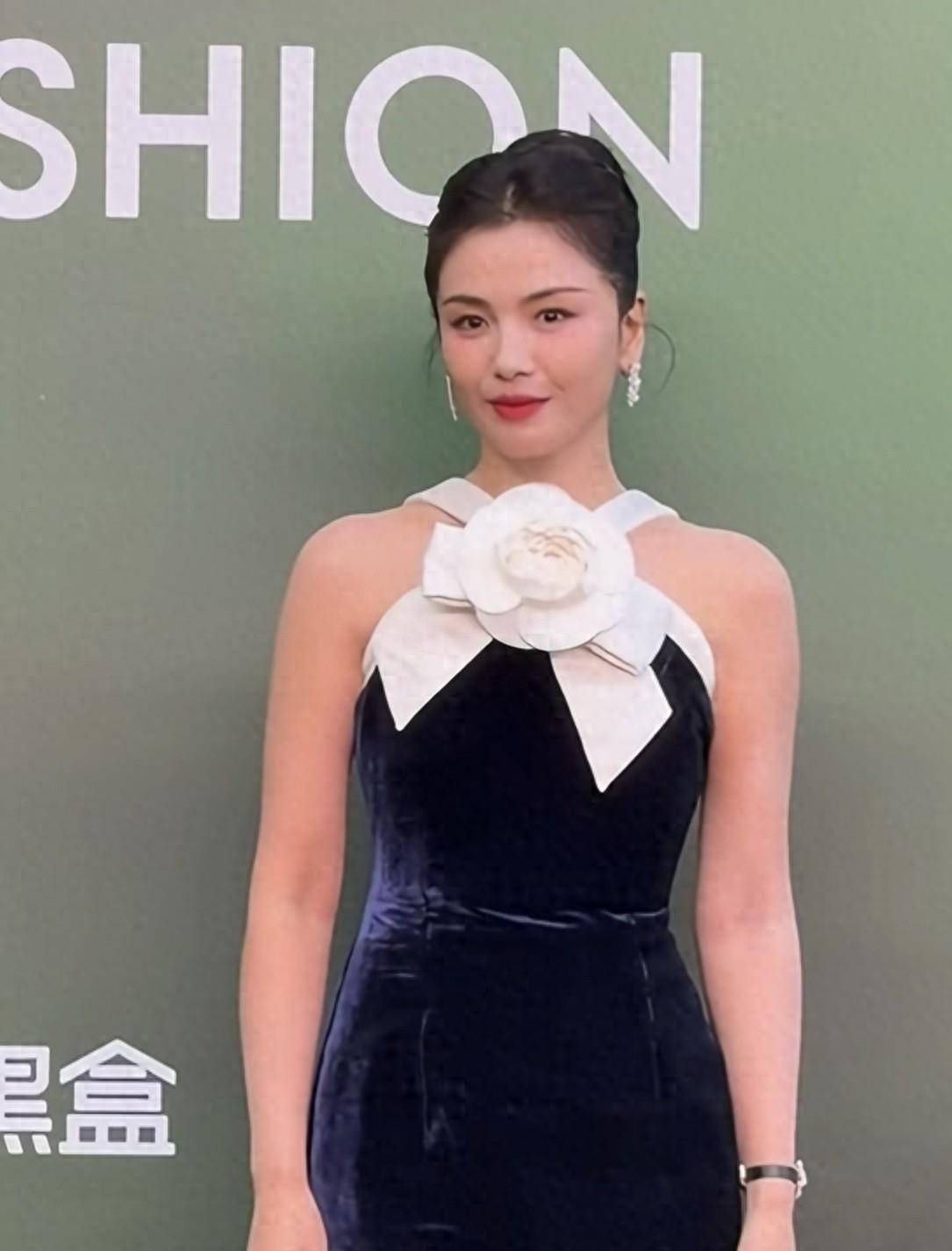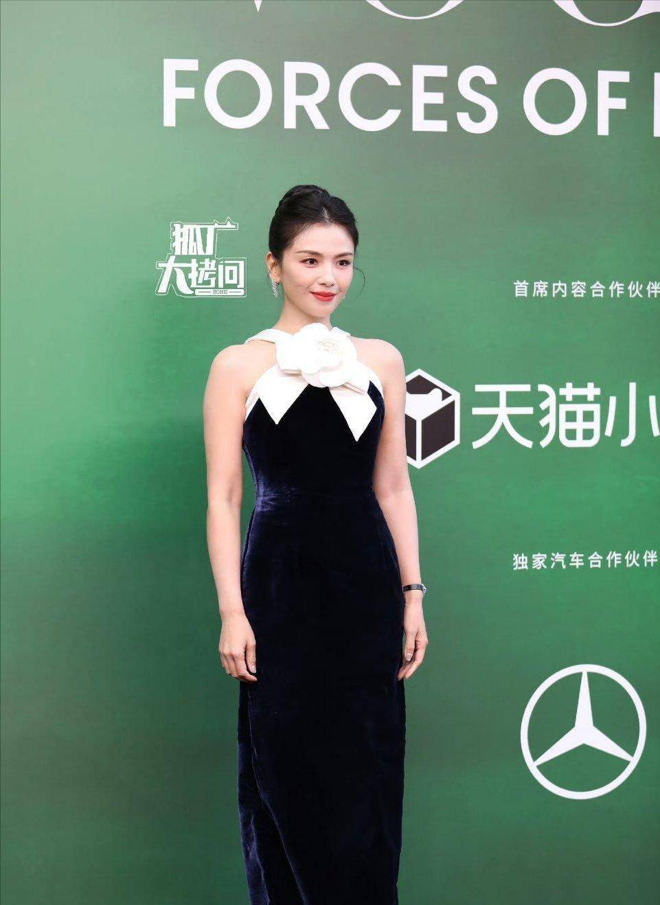 刘涛身着藏蓝色丝绒长裙,紧身剪裁完美勾勒身形。她状态极佳,面部轮廓紧致,肩颈线条优美。