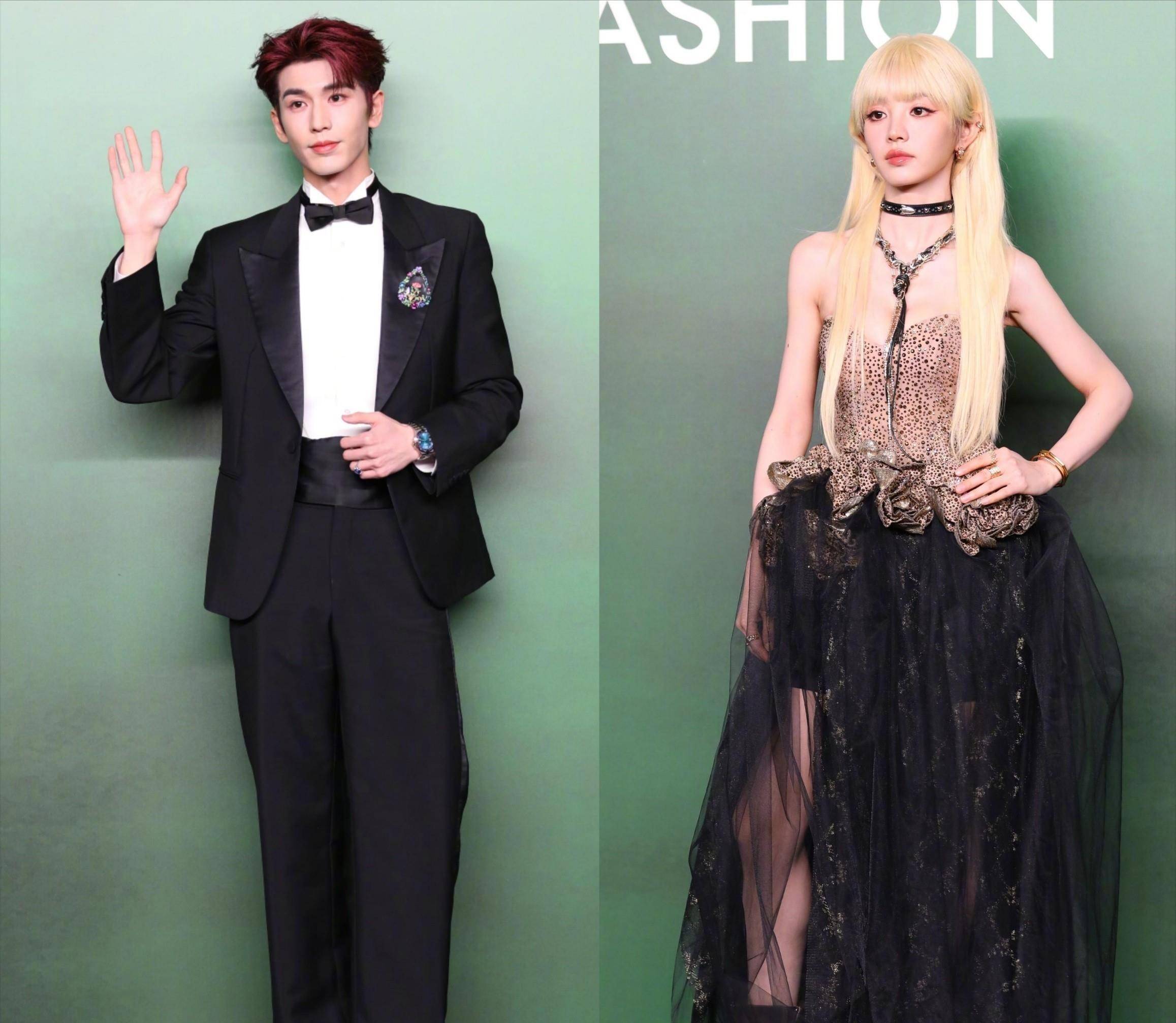 女星造型各有千秋,男明星们的装扮同样引发热议。张凌赫染着亮眼红发,搭配黑色西装与金属胸针,试图营造不羁贵公子形象。
