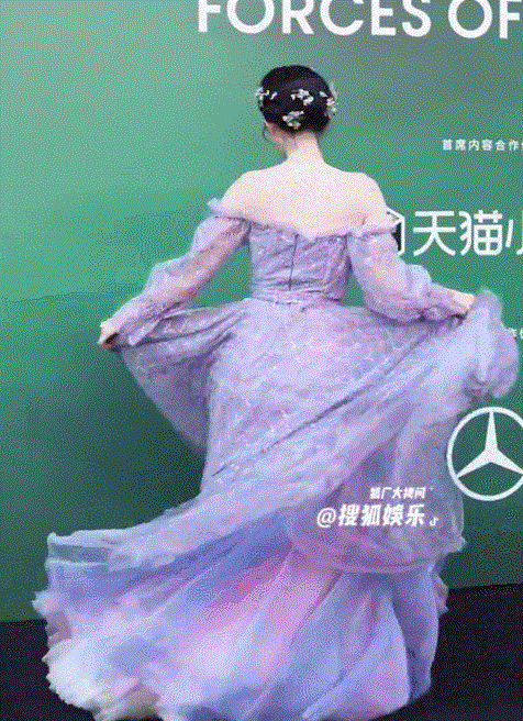 她在红毯上不时整理裙摆,神情中透出些许局促,与往日从容大气的形象略有差距。