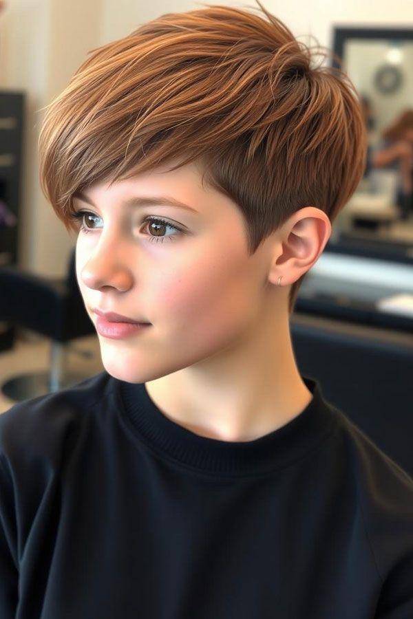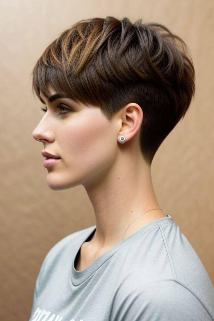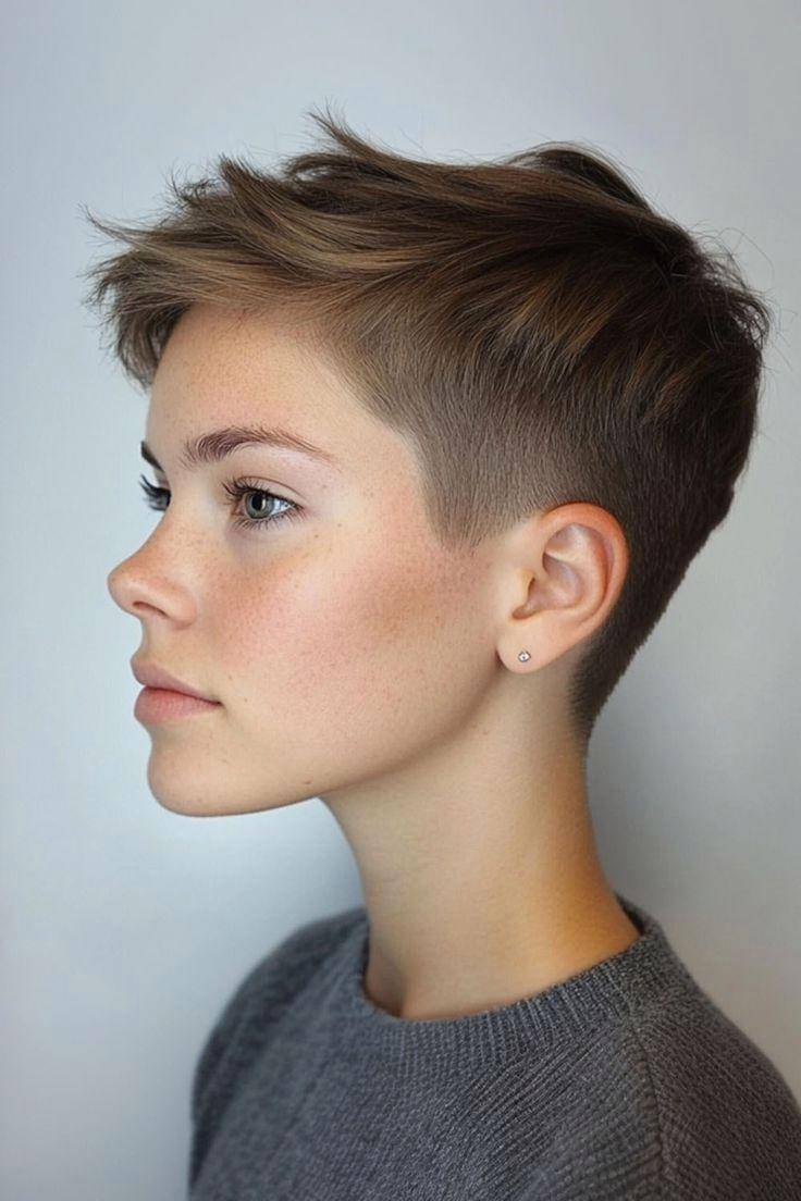 顶部长度缩短至2-3cm,两侧剃短至接近寸头,是追求“无性别穿搭”人群的心头好。极短的轮廓弱化了性别特征,仅靠顶部的细碎纹理保留造型感——搭配oversize卫衣是少年感爆棚的酷妹,换上皮质外套又能透出“生人勿近”的冷感。这种“用极简对抗平庸”的造型,正在成为年轻群体表达自我的“风格符号”。