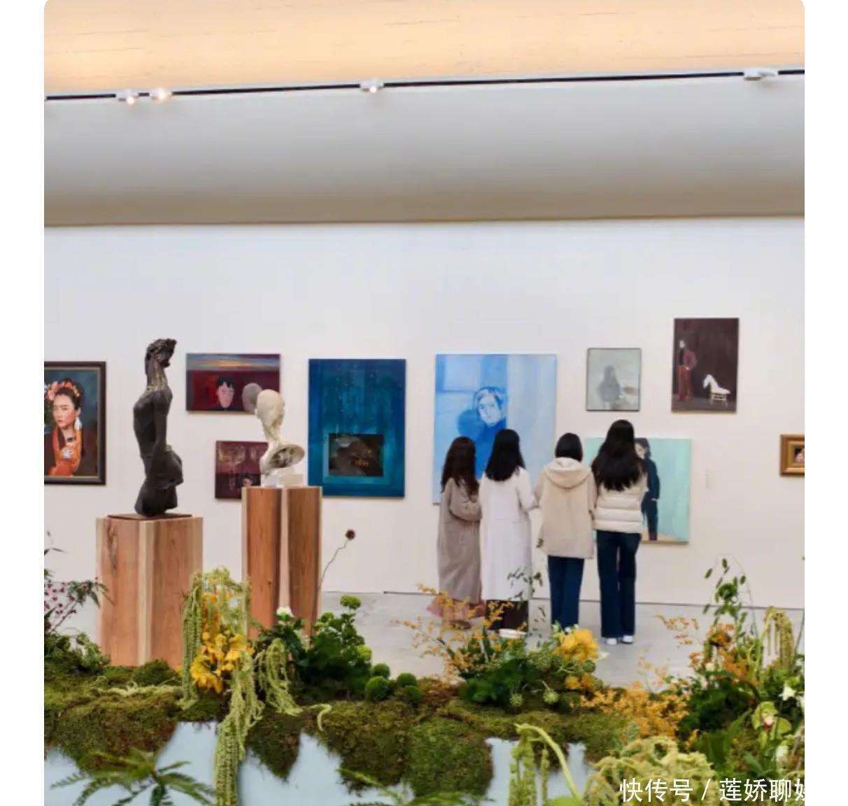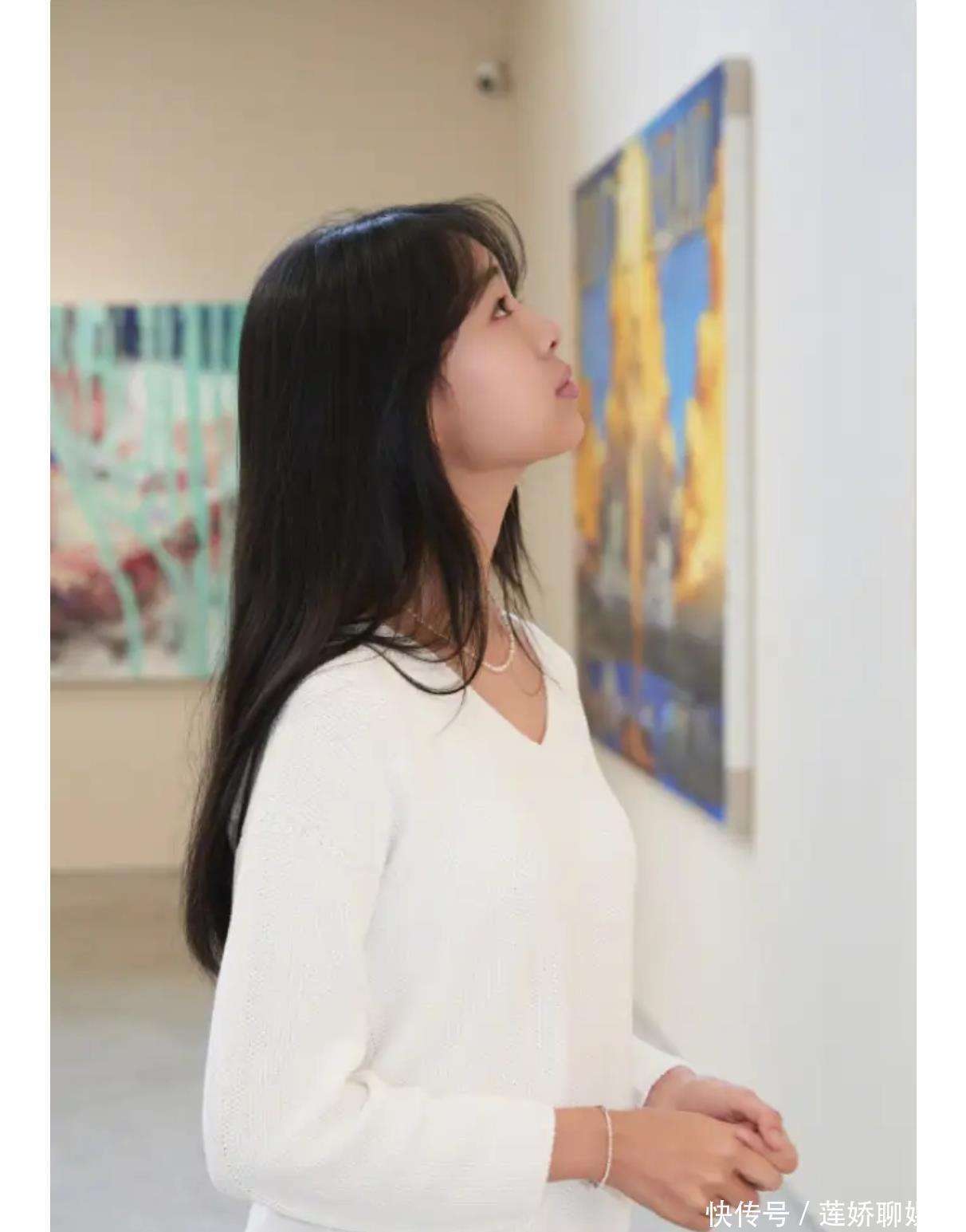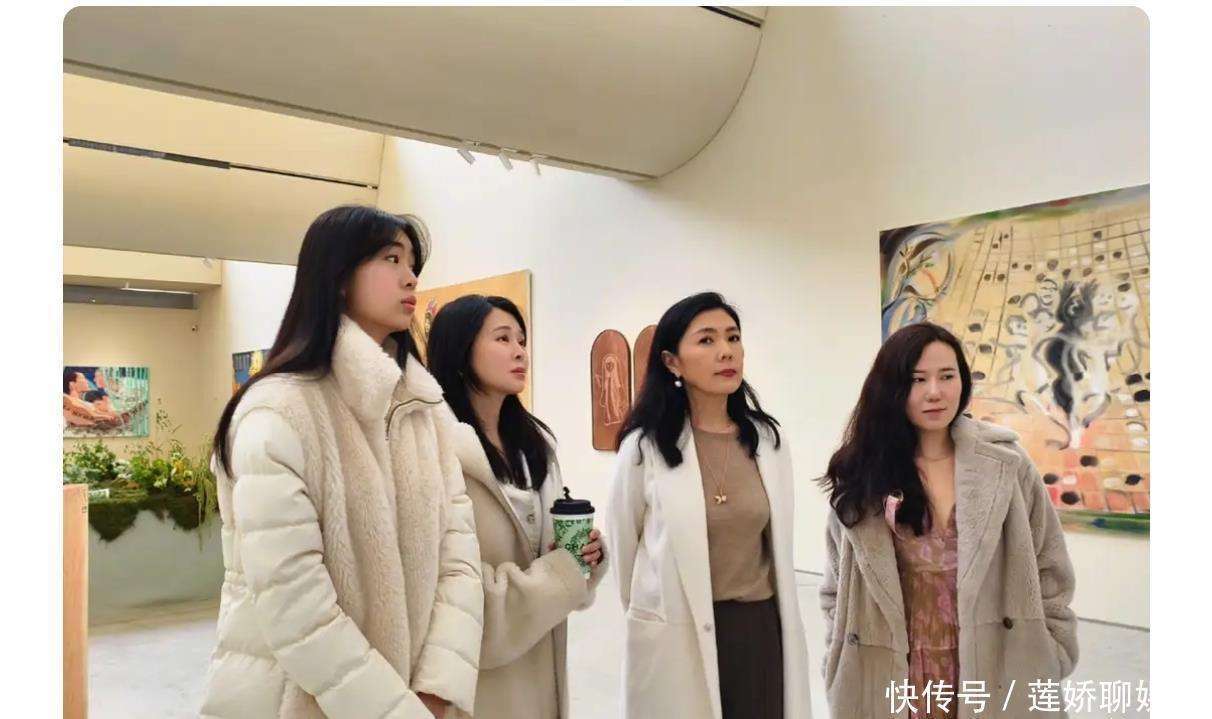 画前站着一对母女,妈妈穿着米白色的针织裙,领口上别着一颗精致的珍珠扣,微微低头,专注地盯着画布上的睡莲。女儿穿着浅蓝色的高腰牛仔裤,搭配一件宽松的白色T恤,发梢自然地微卷着,身高已经接近妈妈的肩膀,比旁边高出一头的展架还高。她们站在那里,像两棵刚刚抽条的白杨树,明亮的身影和青春的气息随风摇曳。这不是她们第一次来到这里,关悦自从大女儿上小学起,就经常带她一起泡在各种美术馆中。这次,佟大为因为在上海拍戏无法陪伴,她和女儿提前约好了一个“母女日”。