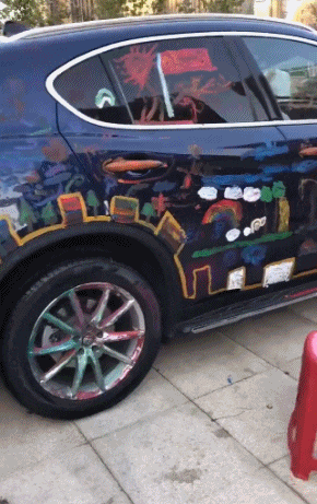 虽然车被画成了这样,但做为父亲的心里还是很高兴的,好好培养以,是个好苗子