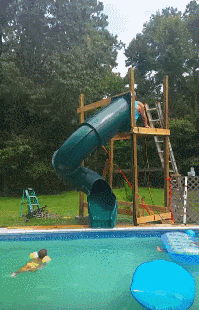 额……这个泳池旁的滑滑梯,可能并不适合你玩……