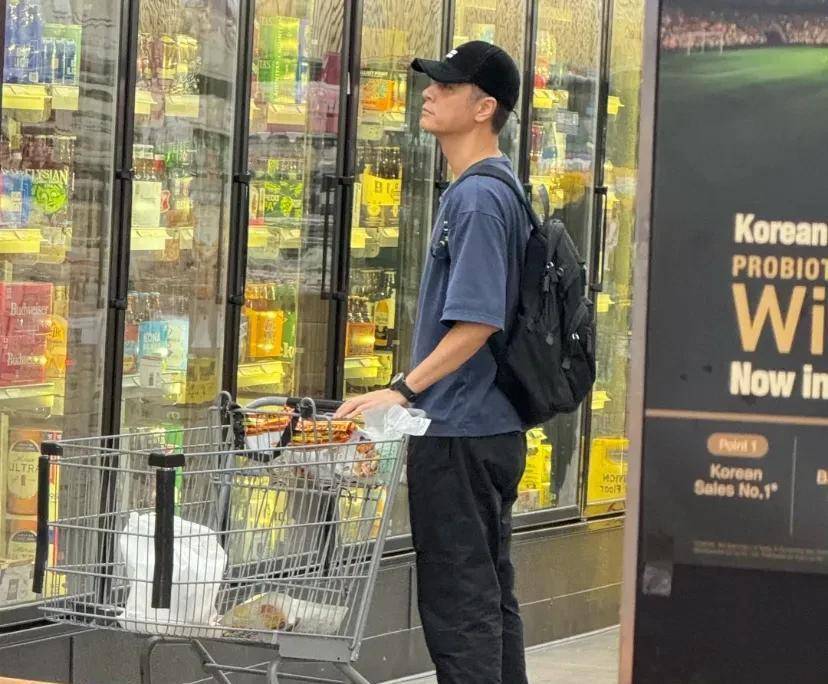 前两天有网友在美国超市偶遇任重,独自推着购物车采购。他背着双肩包、头戴鸭舌帽,车里零星放着几包零食,朴素得像个普通留学生。