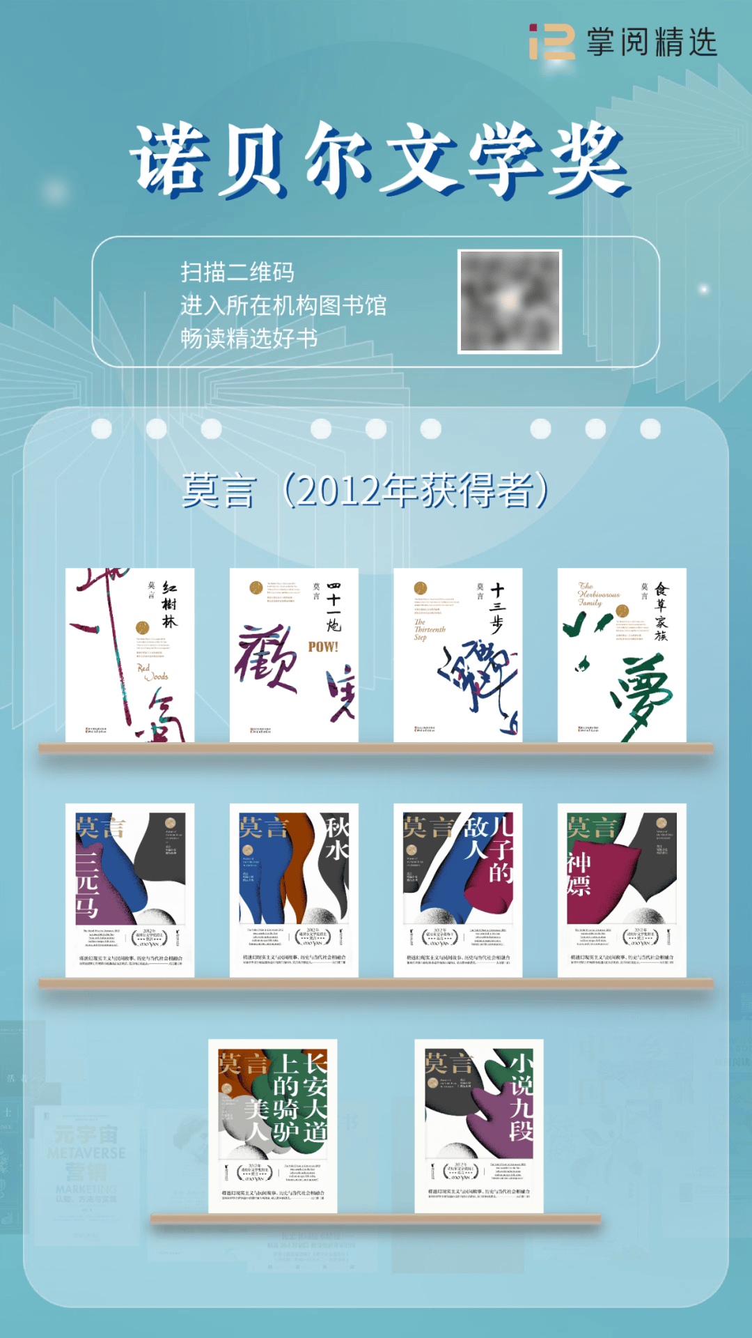 为引领读者走进世界文学殿堂,体验数字移动阅读的便捷,云南省图书馆特举办“诺贝尔文学奖得主系列书单海报展”,将经典作品与移动阅读相结合,为您打造一场触手可及的文学盛宴。