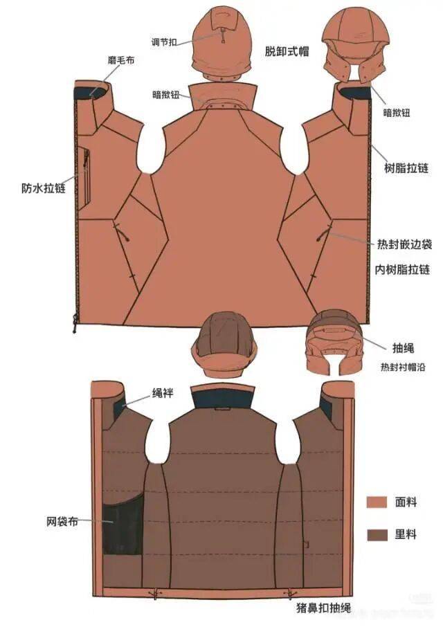 场景融合:冲锋衣设计融入都市美学,如修身剪裁、莫兰迪色系等元素。