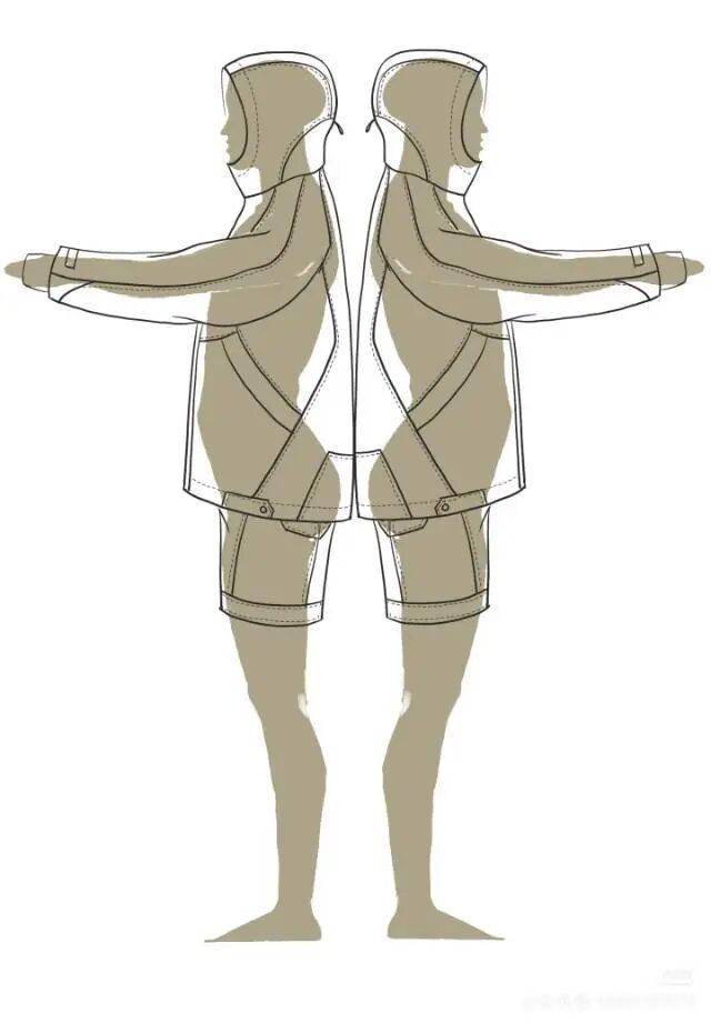 专业户外服装的设计充分考虑运动特性与人体工学。登山服设计注重易于肢体伸展、方便活动,衣袖长度以向上伸直手臂后略长于手腕为标准,袖口松紧可调节