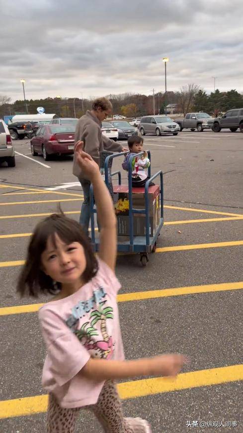 只见安呈旺推着车,凯文乖乖的站在上面,还双手扶着扶手,生怕自己掉下来。