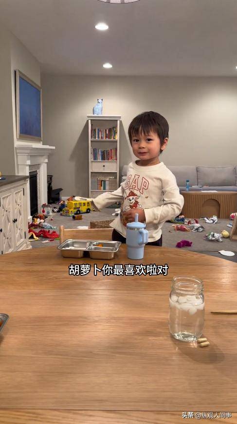 画面中,只见安呈旺抱着君君,而凯文则自己坐在摇摇椅上晃动,看起来非常舒服。