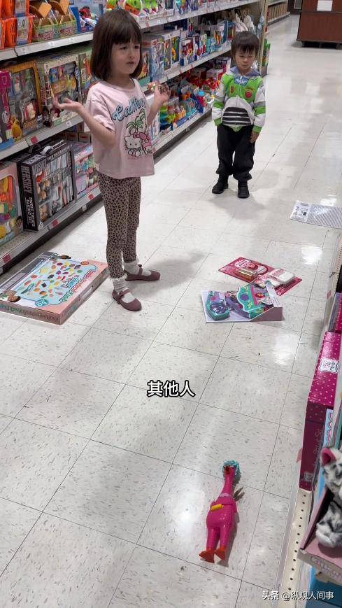 之后,一家人又来到了超市,当逛到玩具区时,只见地上散落了一地狼藉。