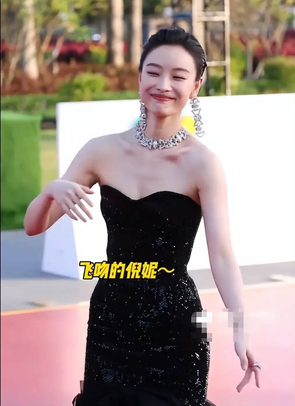 倪妮一袭黑色裹身裙,肤白貌美气场真不错。只是华丽的耳饰、还是项链,显得有些太过繁琐了。倪妮的这组造型,衣着简约、配饰浮夸,有种用力过猛的感觉。