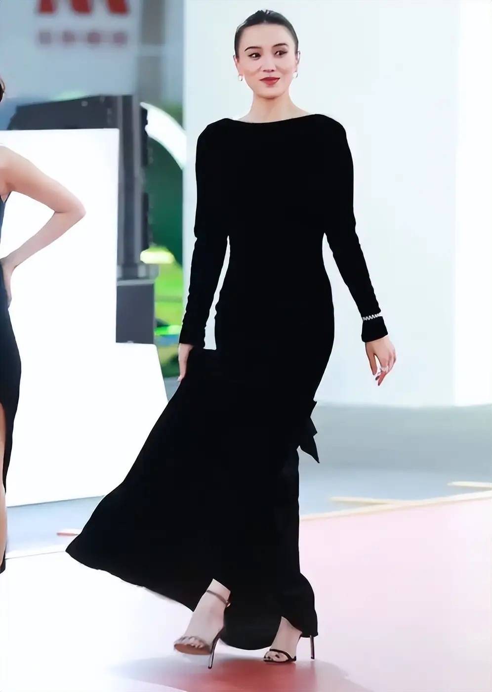 宋佳很喜欢这种大女主的风格,很多红毯造型都会选择这种简约修身的黑色裹身裙,看起来没什么特点,却足够高级拉风。