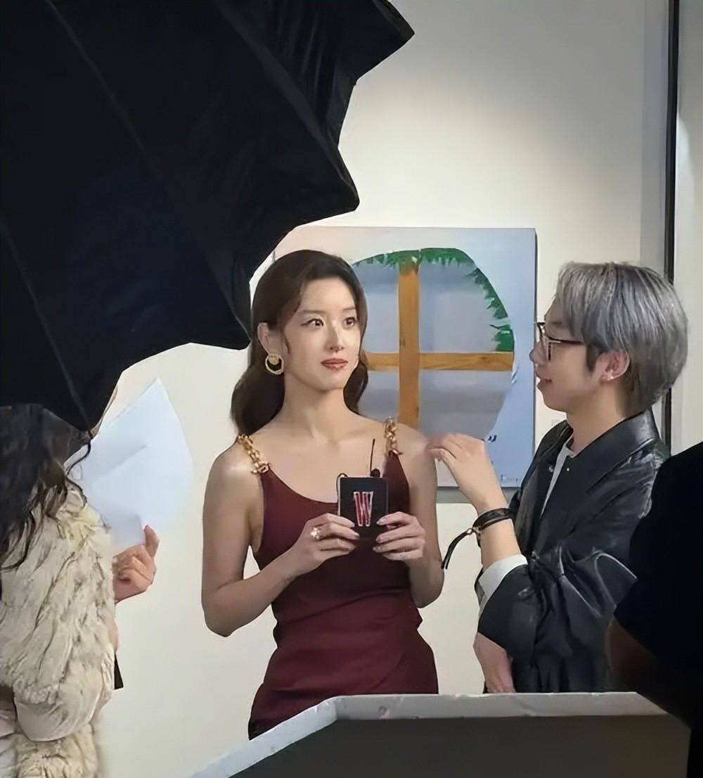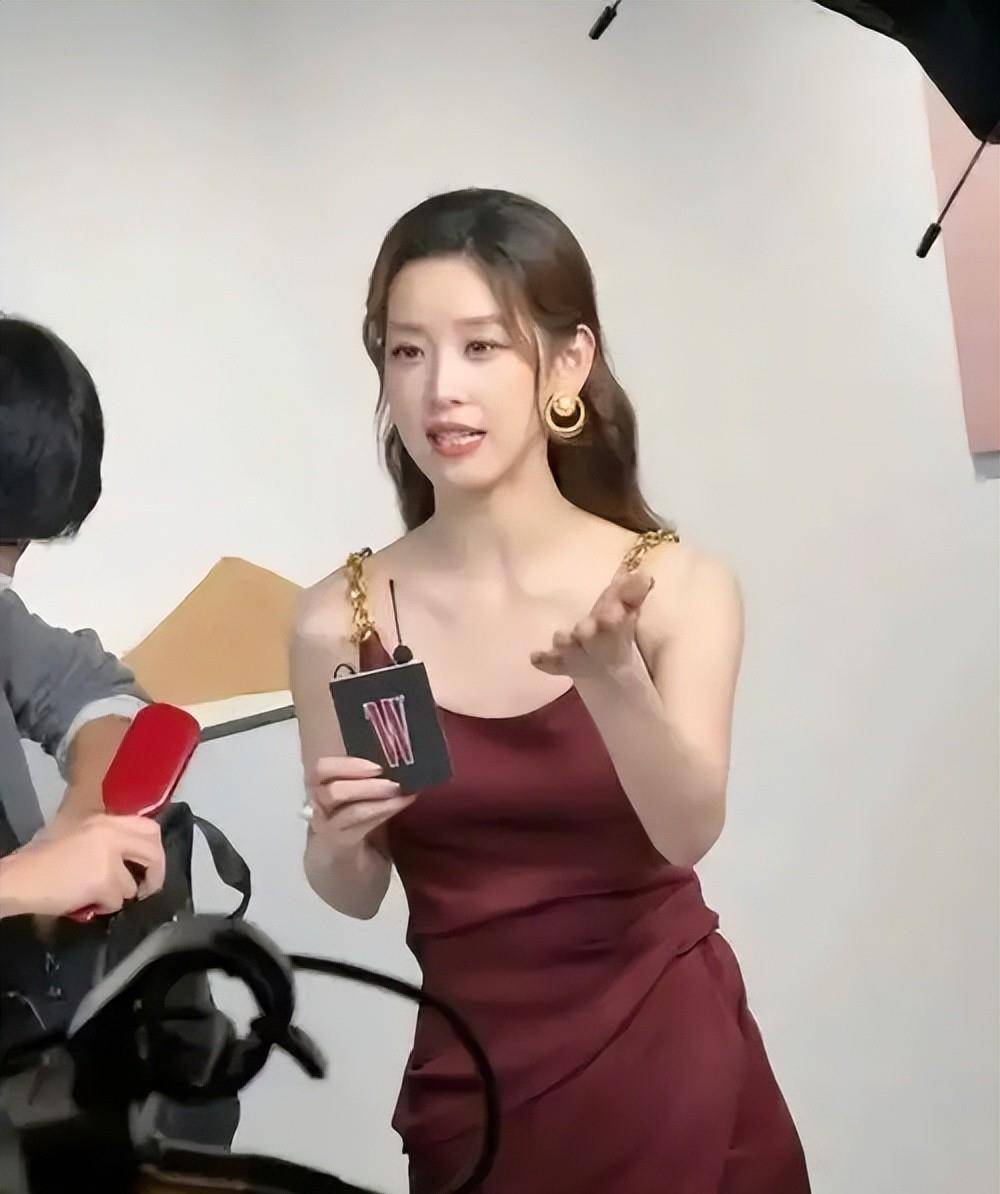 这次她选择的酒红色长裙,在灯光下妖艳夺目,将31岁的青春优势展现得淋漓尽致。裙子的剪裁心机满满,完美勾勒出曼妙曲线,配上精致妆容,确实很有女主角架势。